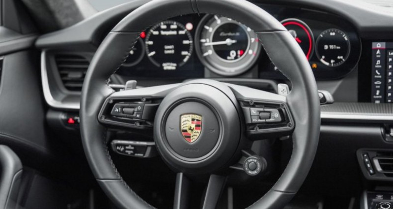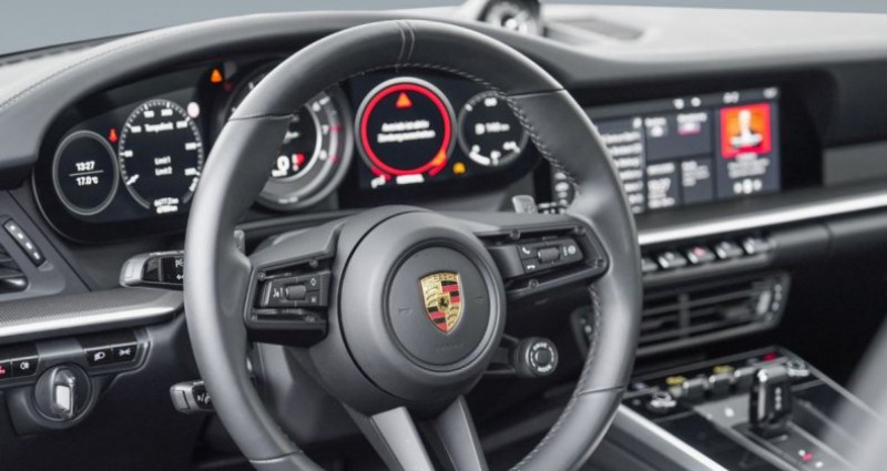 ??Garantie 12 mois Porsche approved 1er main Malus pour la France 17.100€ • Transmission : Automatique • Technologie : Ordinateur de bord, différentiel à glissement limité, système d'amortissement adaptatif, système Start-Stop • Assistances : Reconnaissance des panneaux de signalisation, détecteur de pluie, assistant feux de route, capteur de luminosité, assistance au freinage d'urgence, aide au démarrage en côte, assistant de maintien de voie, avertisseur de distance/collision • Confort : Climatisation, climatisation automatique, direction assistée, verrouillage centralisé, vitres électriques, sellerie cuir, sièges chauffants, rétroviseurs extérieurs électriques, régulateur de vitesse, aide au stationnement, volant multifonctions, accès et démarrage sans clé, sièges électriques, filtre d'habitacle, sièges sport, aide au stationnement avant et arrière, climatisation automatique multizone, accès mains libres, sièges à mémoire, volant cuir, limiteur de vitesse, climatisation automatique bizone, télécommande • Visibilité : Réglage de l'assiette des phares, phares adaptatifs, vitres teintées, rétroviseurs extérieurs chauffants, phares LED, feux arrière LED, caméra de recul, feux de jour LED • Sécurité : ABS, airbags, airbag passager, antidémarrage, airbags latéraux, alarme, ESP, antipatinage, système de surveillance de la pression des pneus Contrôle de traction, airbags rideaux, fixations ISOFIX pour sièges enfant, siège passager ISOFIX • Divertissement : Système de navigation, système audio, pack communication, radio, pré-équipement téléphone, port USB, MP3, Bose, Bluetooth, kit mains libres, Apple CarPlay, commande vocale, radio numérique DAB, Wi-Fi, écran tactile • Autres : Pot catalytique, peinture métallisée, jantes alliage, suspension sport, frein de stationnement électrique, volant chauffant, aileron Équipements en option • (ASV) Film de protection pour la face avant • (1N3) Direction assistée Plus • (2UH) Système de levage de l'essieu avant • (4A3) Sièges avant chauffants • (2PJ) Volant sport GT Chauffant • (QE1) Pack rangement • (8JU) Phares matriciels à LED assombris avec Porsche Dynamic Light System Plus (PDLS Plus) • (P60) Assistance au maintien de voie avec reconnaissance des panneaux de signalisation • (VC2) HomeLink® • (4F2) Accès confort