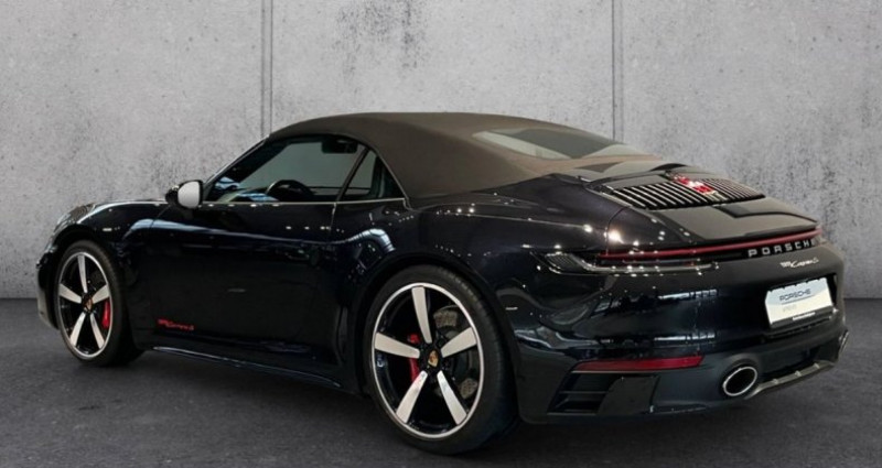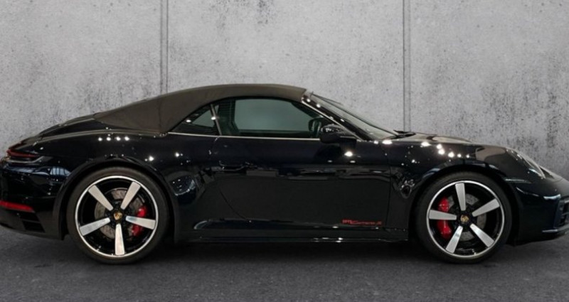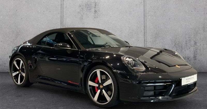 ??Garantie 12 mois Porsche approved 1er main Malus pour la France 11.400€ • Transmission : Automatique • Technologie : Ordinateur de bord, différentiel à glissement limité, suspension adaptative, filtre à particules, système Start-Stop, échappement sport, palettes au volant • Assistances : Capteur de luminosité, aide au démarrage en côte • Confort : Climatisation, climatisation automatique, direction assistée, verrouillage centralisé, vitres électriques, sièges chauffants, rétroviseurs électriques, régulateur de vitesse, aide au stationnement, volant multifonctions, accès et démarrage sans clé, sièges électriques, accoudoir central, filtre d'habitacle, sièges sport, aide au stationnement avant et arrière, toit décapotable électrique, sièges climatisés, climatisation automatique multizone, volant en cuir, limiteur de vitesse, climatisation automatique bizone, télécommande • Visibilité : Vitres teintées, rétroviseurs chauffants, feux arrière à LED, caméra de recul, feux de jour à LED, vitres teintées • Sécurité : ABS, airbags frontaux et latéraux, antidémarrage, alarme, ESP, antipatinage, système de surveillance de la pression des pneus, airbags rideaux, fixations ISOFIX pour sièges enfant Siège passager • Divertissement : Système de navigation, système audio, pack communication, radio, pré-équipement téléphone, port USB, MP3, Bose, Bluetooth, kit mains libres, commande vocale, radio numérique DAB, Wi-Fi, écran tactile • Qualité : Garantie, historique d'entretien complet • Autres : Peinture métallisée, pack sport, jantes alliage, frein de stationnement électrique, déflecteur d'air, aileron Équipements en option • (0I2) Réservoir de carburant : 84 litres • (0P8) Système d'échappement sport, sorties d'échappement en acier inoxydable • (1NW) Jantes alliage (noir métallisé profond, peintes) • (2FS) Volant (GT Sport - cuir) avec palettes de changement de vitesse • (3J7) Appuie-tête avant avec écusson Porsche • (46M) Jantes alliage avant/arrière : 8,5 x 20 / 11,5 x 21 (jantes Carrera Exclusive Design, finition diamantée) • (4A3) Sièges avant chauffants • (4D3) Vitres avant ventilées Sièges • (6F0) Véhicule sans désignation de modèle • (6XV) Rétroviseurs extérieurs rabattables électriquement • (8LH) Pack Sport Chrono • (9VL) Système audio BOSE • (FZ1) Ceintures de sécurité couleur chair • (Q4Q) Sièges Sport Plus (réglables électriquement en 4 directions) • (QE1) Pack Rangement • (QV3) Radio numérique DAB+ • Peinture métallisée
