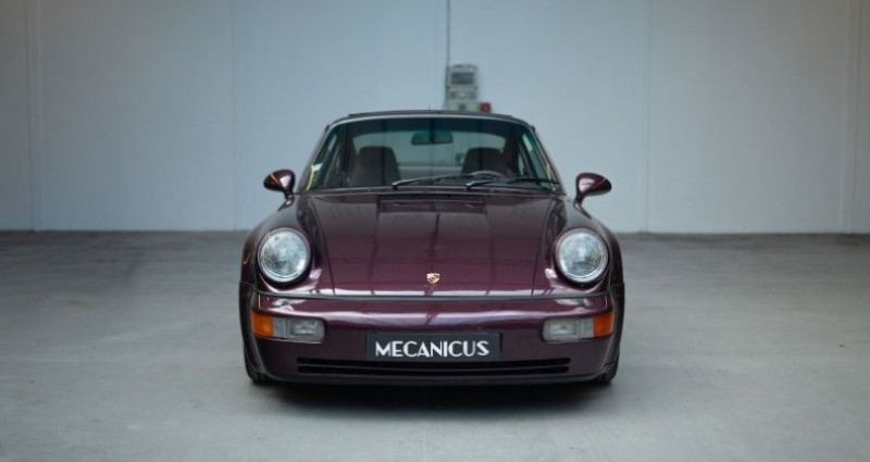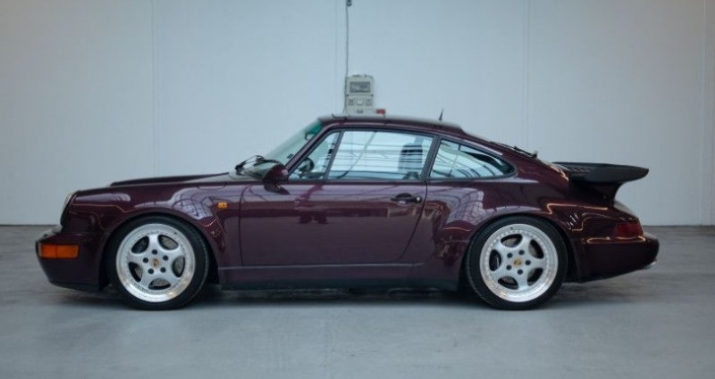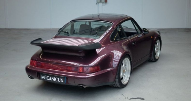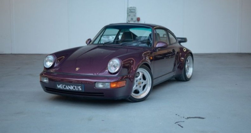 Porsche 911 964 TURBO 3.3 *Amethyst sur Magenta / Suivi Limpide / Jantes type Speedline*, (Coupé), AMETHYST (L38A) , 0cv, mise en circulation le 15-01-1991, garantie 12 mois (12 MOIS). couleur intérieur : VIOLET, boîte de vitesse : manuelle OPTIONS ET EQUIPEMENTS : Autres équipements et informations : - 139 - Siège avant gauche chauffant 220 - LSD Différentiel à glissement limité 340 - Siège avant droit chauffant 383 - Siège avant gauche sport à réglage électrique de la hauteur 387 - Siège avant droit sport à réglage électrique de la hauteur 498 - Capot Kilométrage garanti. La Porsche 964 Turbo 3.3 litres que nous vous présentons est un exemplaire d'origine allemande, livré le 15 janvier 1991 par le Centre Porsche de Baden-Baden. La configuration de celle-ci est très spéciale, elle associe la teinte Amethyst (L38A) à un intérieur tout en cuir Magenta. Cette 964 a été dotée, en seconde monte, de jantes trois parties similaires aux Speedline disponibles plus tard sur les Turbo 3.6 litres. Côté équipements, les codes options originaux comprennent : le différentiel à glissement limité, le toit ouvrant, les sièges Sport réglables électriquement en hauteur et chauffants, ainsi que le capot moteur sans désignation du modèle. La voiture affiche aujourd'hui 139 500 kilomètres au compteur, kilométrage certifié grâce aux relevés disponibles sur son rapport Histovec et aux rapports de contrôles techniques présents dans son dossier. Son importation dans le parc automobile français a eu lieu au mois d'août 1994. Elle fût d'abord entretenue en Allemagne dans son Centre Porsche de livraison, puis au Centre Porsche Annecy de 1995 à 2014. C'est après 2014 que la voiture sortira du réseau Porsche pour être suivie par des spécialistes de la marque. Un très gros entretien fût réalisé en juin 2022, toujours chez GT Sport. Celui-ci comprenait d'importants travaux tels que : le remplacement du filtre à essence, la vidange moteur, le remplacement des 6 bougies, le contrôle et le réglage des culbuteurs, le remplacement d'un flexible de chauffage et une réfection du circuit de climatisation. Le dernier passage chez GT Sport, en juin 2024, comprenait également une vidange de boite de vitesse et le remplacement du liquide de freins ainsi que le remplacement du bandeau de feux. Un entretien sera réalisé pour la vente de la voiture ainsi que le remplacement des quatre pneus. En bref, vous avez ici l'opportunité d'acquérir un bel exemplaire avec une configuration très désirable et un look désormais intemporel ! Notre véhicule est visible à Paris ou sur le site de Mecanicus pour plus de photos. Nos prix s'entendent TVA et malus inclus, le coût de la carte grise reste à la charge de l'acheteur. Reprise et financement possibles. L'équipe MECANICUS Référence annonce : 216