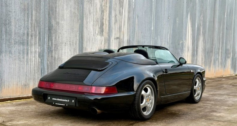 Porsche 964 Carrera 2 Speedster 07/1993 Moteur 3.6l 250 cv Boite de vitesse manuelle G50 à 5 rapports 129 000 kms ! Carnet d'entretien et factures 4eme main, historique complet depuis le 1er jour Tous les documents et accessoires présent dont la trousse à outils, le compresseur de roue, la jauge de pression de pneus, le manuel utilisateur, le carnet d'entretien, le mode d'emploi de l'autoradio avec son code, trousse à pharmacie, le cric, le dossier de presse de l'époque, le tarif de l'époque, le Christophorus, la brochure commerciale ! Tous les stickers présents Dernière révision pour 3k€ à 128 000 kms Compteur passé en 320km/h(avec facture), celui d'origine est présent La voiture a reçu un nettoyage cryogénique complet de son chassis, moteur et boite de vitesse La voiture est en peinture d'origine à l'exception du capot avant et la porte conducteur (voile) Elle se trouve dans un état exceptionnel de conservation. Plus de photos sur notre site internet Couleur extérieure : Noir L741 Couleur intérieure : Noir VN Code options : C00 : Pays de livraison Allemagne 383 : Siège sport gauche 387 : Siège sport droit 562 : Airbag conducteur et passager 573 : Climatisation Préparation intérieur : injecteur extracteur, désinfectant et détachant, traitement des cuirs Préparation carrosserie : Décontamination, polish, lustrant et pose d'une cire Nettoyage cryogénique du moteur (Le nettoyage cryogénique est écologique, non abrasif et sans eau. Il permet d’éliminer efficacement les salissures (graisses, peintures, résidus techniques…) tout en protégeant vos équipements ou vos structures) Les documents sont à consulter sur place, pas d'envoi Garantie 1 an moteur boite et embrayage Sous réserve d'erreurs dans la description Nous nous occupons des formalités administratives Visite sur rendez vous