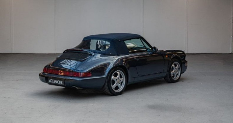 Porsche 911 CABRIOLET (964) Carrera 4 Cabriolet BVM *Marineblau metallic / Historique limpide*, (Cabriolet), BLEU, 0cv, mise en circulation le 28-06-1990, garantie 6 mois (6 MOIS). couleur intérieur : NOIR, boîte de vitesse : manuelle OPTIONS ET EQUIPEMENTS : Kilométrage garanti. La Porsche 964 Carrera 4 Cabriolet que nous vous présentons est un exemplaire d’origine belge, livré par le Centre Porsche Bruxelles le 29 juin 1990. La configuration de cette dernière est exceptionnelle, avec une combinaison tons sur tons : Marine Blau Metallic (L35V) avec un intérieur Marine Blau (VF) et la capote de toit bleue. Côté équipements, cette 964 dispose entre autres de la climatisation, des sièges en cuir fin et de l’ordinateur de bord. La liste complète des options est disponible ci-dessus. Quelques modifications y ont été apportées, telles qu’un silencieux d’échappement, des rétroviseurs de phase 2 ainsi que des jantes de 993. La voiture affiche actuellement 164 000 kilomètres au compteur, parcourus avec 9 propriétaires au total. L’état cosmétique de cette 964 est très bon, tant pour la carrosserie que pour la sellerie. Son historique d’entretien est tout aussi limpide ; ils furent réalisés en Centre Porsche dans un premier temps, puis chez des spécialistes de la marque. La traçabilité est complète. Un dossier de factures conséquent permet de retracer les opérations réalisées depuis 1999 ; il est aussi accompagné du carnet d’entretien original tamponné de la livraison jusqu’en 2017. La dernière révision a été réalisée en 2024 ; une grosse révision sera effectuée pour la vente de la voiture chez un spécialiste, avec l’étanchéité du moteur et le double allumeur. Aucune chance de résister à cette superbe Carrera 4 Cabriolet : elle ne peut que vous séduire avec sa combinaison de coloris rare, son état et son historique d’entretien ! Equipement optionnel : 330 - Radio Blaupunkt 498 - Capot moteur sans désignation du modèle 567 - Pare brise en verre teinté 573 - Climatisation 659 - Ordinateur de bord 935 - Housses de sieges 980 - Sieges en cuir fin Liste des entretiens : 06/1990 - Livraison - 0km - Porsche Bruxelles 12/1990 - Entretien - 2547km - Porsche Bruxelles 01/1994 - Entretien - 7600km - Porsche Bruxelles 03/1995 - Entretien - 9475km - Porsche Bruxelles 01/1996 - Entretien - 20136km - Porsche Bruxelles 10/1996 - Entretien - 34000km - Porsche Bruxelles 08/1997 - Entretien - 47661km - Porsche Bruxelles 05/1999 - Entretien - 71528km - Porsche Bruxelles 07/2000 - Entretien - 91103km - Porsche Bruxelles 04/2002 - Entretien - 101498km - Porsche Lyon 09/2004 - Entretien - 111709km - Porsche Lyon 06/2007 - Entretien - 115567km - Garage M.R.A Lyon 05/2010 - Entretien - 130431km - Porsche Toulouse 03/2011 - Entretien - 132127km - JK Racing Marseille (Spécialiste Porsche) 03/2012 - Entretien - 139500km - Auto-Plus 103 (Spécialiste Porsche) 04/2014 - Entretien - 149600km - Auto-Plus 103 (Spécialiste Porsche) 10/2017 - Entretien - 153720km - South Race Imports 06/2021 - Entretien - 155546km - 911 Avenue 04/2024 - Entretien - 161038km - Castellet Car Motorsport Le véhicule est couvert par un contrat de garantie Triomphe Héritage 6 mois avec plafond de 2500€ et 10 000km. Extension de durée (12, 24 ou 36 mois) et/ou de plafond (5 000€ ou 10 000€) possible. L'auto est visible à Paris ou sur le site de Mecanicus pour plus de photos. Nos prix s'entendent TVA et malus inclus, le coût de la carte grise reste à la charge de l'acheteur. Reprise et financement possibles. L'équipe MECANICUS Référence annonce : 226