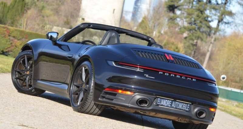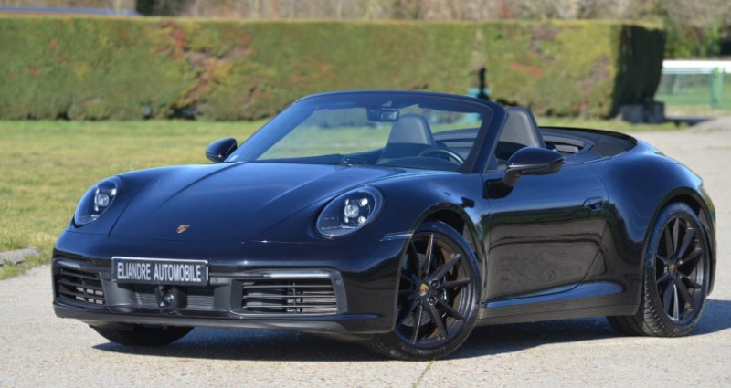Très belle Porsche 911 type 992 Carrera S Cabriolet, 1ère main, noir métal, sellerie cuir noir, capote noire, jantes noires, carnet d'entretien complet à jour, voiture en parfait état.