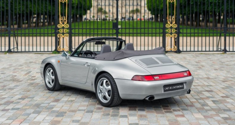 OPTIONS ============== C11 Version Autriche X51 Kit moteur X51 XNA Genouillère en cuir XM7 Boîte à gants en cuir XP3 Couvre-capote en cuir XRB Jantes Sport Classic 18 XJ6 Colonne de volant en cuir XN3 Bouches d'aération en cuir XV5 Commandes de sièges en cuir XW4 Interrupteur d'éclairage en cuir XV4 Commandes de chauffage en cuir XR3 Charnières de sièges avant en cuir XV2 Bouches d'aération latérales en cuir XV1 Cache de bouches d'aération en cuir XM5 Bouton de commande gainé de cuir XV3 Commandes de climatisation en cuir XN4 Bouches d'aération centrales en cuir XV7 Tirette du bouton de réservoir en cuir XV6 Plaque de commande de siège en cuir XV9 Caches de ceinture de sécurité en cuir XP6 Verrous de ceinture de sécurité en cuir XJ4 Entourage de serrure de contact en cuir XMB Pare-soleil en cuir avec lampe de lecture XW3 Interrupteur d'essuie-glace arrière en cuir XD3 Essuie-glaces avec capteur de pluie intégré XW2 Boîtiers de ceinture de sécurité arrière en cuir XN1 Interrupteurs de lève-vitres électriques en cuir XE3 Rétroviseur intérieur à graduation automatique XF7 Plateau derrière le frein de stationnement en cuir XN2 Revêtement intérieur des poignées de porte en cuir XM9 Interrupteur d'essuie-glace et de clignotants en cuir XP9 Anneau de garniture du haut-parleur de l'autoradio en cuir INFORMATIONS ============== Kit moteur X51 Etat irréprochable Première peinture Exemplaire unique Carnet, notices, double de clés Facture d’achat, factures d'entretien Faible kilométrage, historique limpide Innombrables options Porsche ExclusiveSuivi et entretien :Le 20/02/1998 à 57 kms par le Centre Porsche Wien - livraison Le 06/11/1998 à 4 230 kms par le Centre Porsche Wien Le 10/05/1999 à 4 380 kms par le Centre Porsche Wien Le 08/05/2000 à 8 931 kms par le Centre Porsche Wien Le 24/06/2004 à 23 054 kms par le Centre Porsche Wien Le 29/04/2005 à 25 422 kms par le Centre Porsche Wien Le 21/04/2006 à 27 312 kms par le Centre Porsche Wien Le 13/04/2007 à 31 393 kms par Kfz-Meisterbetrieb à Bensheim Le 22/06/2010 à 41 679 kms par Autohaus Michael Madner à Ernstbrunn Le 15/04/2019 à 50 301 kms par le Centre Porsche Wien Le 07/04/2022 à 51 818 kms par Herzog Kfz à Wien Le 22/06/2023 à 54 016 kms par le Centre Porsche Vélizy Le 13/11/2024 à 56 623 kms par le Centre Porsche VélizyLa Porsche 993 Carrera 4 Cabriolet que nous sommes fiers de présenter est un exemplaire véritablement unique. Passée entre les mains du département Porsche Exclusive à l’époque, cette 993 bénéficie d’une configuration hors normes, comptant pas moins de 31 options X, reflet d’un niveau de personnalisation particulièrement rare. Peinte en Argent Arctique, elle est dotée du très recherché kit moteur X51, mais c'est surtout à l’intérieur que cette personnalisation atteint son apogée, avec une profusion de cuir exceptionnelle jusqu’aux moindres détails.En effet, absolument tout l'intérieur a été revêtu de cuir Gris Classique. Elle dispose également de la grille moteur de la Carrera 2S d’origine. A la commande, son prix d’achat avait alors doublé par rapport au modèle de base, ce qui témoigne du niveau de personnalisation. Cette 993 se présente aujourd’hui dans un état irréprochable, avec seulement 57 500 km parcourus en 27 ans. Elle a bénéficié d’un suivi rigoureux, exclusivement réalisé en Centre Porsche Officiel ou chez des spécialistes reconnus de la marque. Nous disposons de sa facture d’achat ainsi que d’un dossier complet et documenté regroupant de nombreuses factures d’entretien, attestant du soin constant apporté à ce véhicule.Présentée au Salon de Francfort en 1993, la 911 type 993 succède à la 964. Grâce à sa superbe ligne, l'auto reçoit immédiatement un énorme succès. Elle présente un visage inédit avec des phares avant inclinés, ainsi qu'une ligne lissée et adoucie par rapport aux modèles précédents. L’introduction de la 993 a été une étape importante dans l’histoire de Porsche, elle fût la dernière à utiliser le moteur refroidi par air, caractéristique de la 911 depuis son lancement.La 911 Type 993 est considérée par beaucoup comme la plus belle de toutes les 911 car elle conserve la ligne de base en ajoutant la modernité mécanique et esthétique. Parallèlement à l'introduction de la caisse profilée, une suspension arrière multi-bras améliore le confort et le comportement dynamique en réduisant la tendance au survirage. La 993 Carrera Cabriolet avec le kit X51 hérite du moteur Flat 6 tout aluminium de 3,8L de la Carrera RS, qui développe 300 ch. Le 0 à 100 km/h est réalisé en 5,5 secondes pour une vitesse maximale établie à 270 km/h.INFORMATIONS IN ENGLISHFirst paint Unique car Impeccable condition? X51 Factory power upgrade Purchase and service invoices? Low mileage, crystal clear history? Countless Porsche Exclusive options? Maintenance book, manuals, spare keysService history:On 02/20/1998 at 57 km by Porsche Center Vienna - delivery On 11/06/1998 at 4,230 km by Porsche Center Vienna On 05/10/1999 at 4,380 km by Porsche Center Vienna On 05/08/2000 at 8,931 km by Porsche Center Vienna On 06/24/2004 at 23,054 km by Porsche Center Vienna On 04/29/2005 at 25,422 km by Porsche Center Vienna On 04/21/2006 at 27,312 km by Porsche Center Vienna On 04/13/2007 at 31,393 km by Kfz-Meisterbetrieb in Bensheim On 06/22/2010 at 41,679 km by Autohaus Michael Madner in Ernstbrunn On 04/15/2019 at 50,301 km by Porsche Center Vienna On 04/07/2022 at 51,818 km by Herzog Kfz in Vienna On 06/22/2023 at 54,016 km by Porsche Center Vélizy On 11/13/2024 at 56,623 km by Porsche Center VélizyThe Porsche 993 Carrera 4 Cabriolet we are proud to present is a truly unique example. Passing through the hands of the Porsche Exclusive department, this 993 boasts an extraordinary specification, featuring no fewer than 31 X options. Finished in Arctic Silver, it is equipped with the highly 