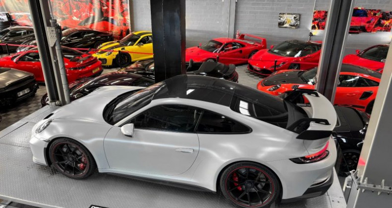 PORSCHE 992 GT3 CLUBSPORT - TVA apparente - carbone - lift Année : 2023 Mise en circulation : 27/10/2023 Kilométrage : 4560 kms Boîte de vitesse : automatique Energie : essence Puissance fiscale : 41 CV Puissance din : 510 CH Couleur extérieur : gris craie Couleur intérieur : cuir noir et alcantara Nombre de portes : 2 Nombre de places : 2 Garantie : 12 mois Véhicule livré neuf en France, il s’agit d’une première main. Se trouve dans des conditions esthétiques irréprochables, et dans une superbe configuration avec plus de 35 000€ d’options ! Un PPF complet a été posé sur cet exemplaire (finition satinée) et la TVA est apparente. OPTIONS ET EQUIPEMENTS : Pack clubsport avec extincteur Pack chrono sport Pack carbone intérieur Système de levage de l’essieu avant Réservoir 90 litres Peinture craie Intérieur en cuir noir et alcantara avec surpiqûres rouges Jantes peintes en noir avec bordures rouge indien Sièges baquets Ceintures de sécurité rouge indien Toit en carbone Fond de compte tours en rouge indien Pare soleil en alcantara Accoudoir central en alcantara avec écusson PORSCHE Système audio BOSE Aide au stationnement arrière Caméra de recul PDLS+ Feux arrière exclusive design Rétroviseurs intérieur et extérieurs anti éblouissement (avec capteur de pluie) Préparation « porsche daschcam » Vitrage teinté … Prix : 165 416,66€ HT // 198 500€ TTC Pour plus d’informations, nous contacter. Véhicule disponible sur rendez-vous uniquement chez : DREAM CAR PERFORMANCE 39 Allée des géomètres 06700 Saint-Laurent du Var Showroom ouvert du lundi au vendredi de 10h à 12h et de 14h à 18h. Livraison par camion fermé disponible à travers le monde sur demande. Mlle RIVIERE Eloise