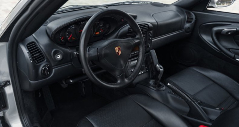 OPTIONS ============== 981 Intérieur cuir 692 Chargeur 6 CD C05 Version France 635 Assistance parking 454 Régulateur de vitesse 573 Climatisation automatique 663 Combiné téléphonique pour PCM 480 Boîte de vitesses manuelle à 6 rapports 680 Système audio BOSE haute performance 662 Porsche Communication Management (PCM) 438 Siège Confort à droite, réglable électriquement 437 Siège Confort à gauche, réglable électriquement INFORMATIONS ============== Faible kilométrage Suivi exclusif Porsche Origine Centre Porsche Levallois Etat irréprochable, CarVertical OK Désirable version en boîte manuelle Pochette avec carnet d'entretien original et factures, notices, double de clésSuivi et entretien :Le 05/10/2000 - livraison par le Centre Porsche Levallois Le 09/04/2003 à 18 920 kms par le Centre Porsche Levallois Le 28/10/2009 à 23 602 kms par le Centre Porsche Rouen Le 26/11/2014 à 28 603 kms par le Centre Porsche Rouen Le 02/12/2016 à 29 966 kms par le Centre Porsche Arpajon Le 30/11/2018 à 30 707 kms par le Centre Porsche Arpajon Le 05/06/2020 à 31 265 kms par le Centre Porsche Arpajon Le 10/02/2023 à 32 333 kms par le Centre Porsche Arpajon Le 28/04/2025 à 33 310 kms par le Centre Porsche ArpajonLargement avantagée par sa boite de vitesse manuelle 6 rapports, la Porsche 996 Turbo que nous vous proposons dispose d'une élégante configuration Argent Arctique avec l'intérieur tout cuir Noir mais se distingue également pat son faible kilométrage de 33 900 kms ! Livrée à l'origine par le Centre Porsche Levallois et depuis exclusivement et rigoureusement suivie en Centre Porsche, l'auto se présente dans un état irréprochable. Elle est en outre très bien équipée avec la sono BOSE, l'assistance parking ou encore le régulateur de vitesse, et elle est prête à reprendre la route. Présentée au début des années 2000, la Porsche 996 Turbo s'inscrit alors comme le fleuron de la marque : élégante et sportive à la fois, la Turbo opte pour une ligne fluide et de vraies évolutions mécaniques puisqu'elle marque la fin du refroidissement par air qu'on trouvait sur la 993 Turbo. Elle est proposée à la clientèle Porsche en version Tiptronic, mais également en boîte manuelle.Le bloc moteur Metzger utilisé est issu de la fabuleuse GT1. Ce 6 cylindres à plat de 3 600 cm3 développe une puissance de 420 ch, et un couple de 560 Nm disponible sur un large panel du compte-tours. Le 0 à 100 km/h est expédié en 4,2 secondes et la vitesse maximale est établie à 307 km/h. INFORMATIONS IN ENGLISHLow mileage Exclusively serviced by Porsche Impeccable condition, CarVertical OK Delivered new by Porsche Centre Levallois Desirable 6-speed manual transmission version Pouch with original service book and invoices, manuals, duplicate keysService history:On 10/05/2000 - delivery by Porsche Centre Levallois On 04/09/2003 at 18,920 km by Porsche Centre Levallois On 10/28/2009 at 23,602 km by Porsche Centre Rouen On 11/26/2014 at 28,603 km by Porsche Centre Rouen On 12/02/2016 at 29,966 km by Porsche Centre Arpajon On 11/30/2018 at 30,707 km by Porsche Centre Arpajon On 06/05/2020 at 31,265 km by Porsche Centre Arpajon On 02/10/2023 at 32,333 km by Porsche Centre Arpajon On 04/28/2025 at 33,310 km by Porsche Centre ArpajonSignificantly enhanced by its 6-speed manual gearbox, the Porsche 996 Turbo we are offering features an elegant Arctic Silver paintjob with a full black leather interior and stands out for its low mileage of only 33,900 km. Originally delivered by Porsche Centre Levallois and exclusively and meticulously maintained at Porsche Centres ever since, the car is presented in impeccable condition. It is also very well equipped with the BOSE sound system, parking assistance and cruise control, and is ready to hit the road again.Introduced in the early 2000s, the Porsche 996 Turbo established itself as the brand's flagship: both elegant and sporty, the Turbo features a fluid design and significant mechanical upgrades, marking the end of the air-cooled version found on the 993 Turbo. It is available to Porsche customers in a Tiptronic version, and also with a manual transmission.The Metzger engine used is derived from the fabulous GT1. This 3,600 cc flat-6 develops 420 hp and 560 Nm of torque, available across a wide range of the rev counter. The 996 Turbo reaches 60 mph in 4.2 seconds, and its top speed is set at 190 mph.