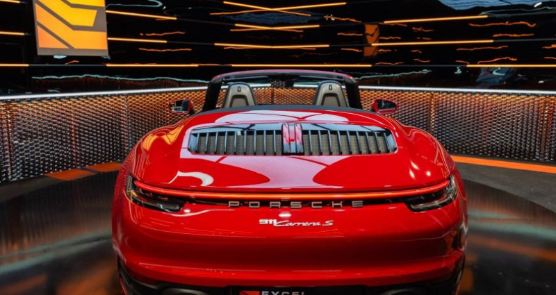 Boite de Vitesse : PDK Crédit Possible : Oui Garantie : 12 à 60 Mois Options : Équipements de série + Système d'échappement sport en Noir - Servotronic Plus - Réservoir de carburant de 90 litres - Porsche Active Suspension Management (PASM) avec suspension sport (châssis - 10mm) - Jantes RS Spyder Design 20/21 pouces - Intérieur tout cuir Noir - lonisateur - Eclairage d'ambiance - Sièges sport Plus (4 positions, électrique) - Sièges chauffants à l'avant - Volant sport GT en Alcantara - Radio numérique - Rétroviseurs intérieur et extérieurs anti-éblouissement avec capteur de pluie intégré - Pare-brise teinté dégradé - Affichage des limitations de vitesse avec assistance de maintien dans la voie - Régulateur de vitesse adaptatif - Accès Confort Historique : Cette Porsche 992 Carrera S a été livrée neuve en octobre 2019 par le Centre Porsche Stuttgart. Importée en France en mars 2019, elle a toujours été entretenue dans le réseau Porsche, aux dates et kilométrages suivants : Le 23/10/2020 à 30 517 km par le Centre Porsche StuttgartLe 20/01/2022 à 42 031 km par le Centre Porsche VélizyLe 08/07/2024 à 45 430 km par le Spécialiste Porsche Prestige AutoSpécifications :Mise en circulation15/10/2019Couleur carrosserieROUGE CARMINIntérieurINTÉRIEUR TOUT CUIR NOIRKilométrage57200 kmMoteurEssenceBoite de vitessePDKPuissance DIN450 CHPuissance Fiscale34 CVEmissions CO²205 g/kmCrédit possibleOuiGarantie12 à 60 MoisN° VO3104Points clés :134?900 € TTCContactez-nousCarte grise française - Malus payé