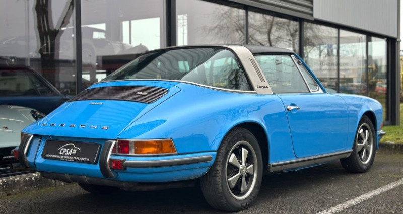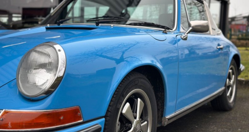 Porsche 911 Targa de 1972, un modèle emblématique au design intemporel. Avec son arceau caractéristique et sa configuration découvrable, elle offre une expérience de conduite unique. Présentée ici dans une élégante teinte bleue, elle séduira les amateurs de véhicules de collection.