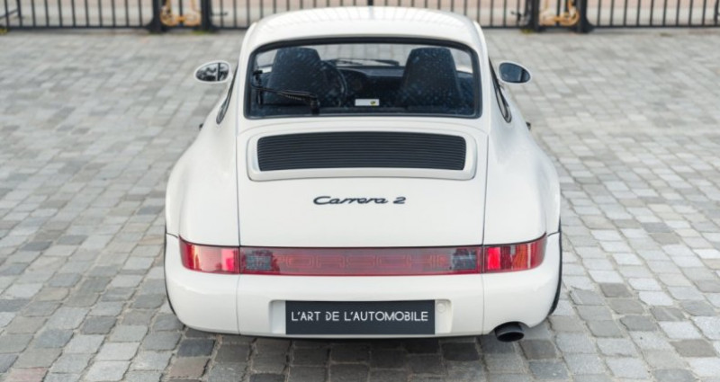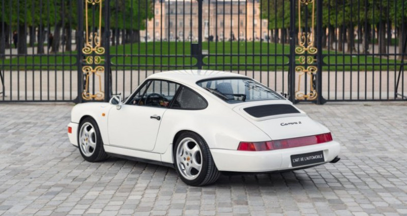 OPTIONS ============== C05 Version France 425 Essuie-glace arrière 659 Ordinateur de bord 573 Climatisation automatique 220 Différentiel à glissement limité INFORMATIONS ============== Troisième main Matching numbers Origine Centre Porsche Lyon Dans la même famille jusqu'en 2020 Tout juste révisée chez un spécialiste parisien Première peinture intégrale hormis les capots (qui sont matching) Dossier avec bon de commande, facture d'achat, première carte griseSuivi et entretien :Le 05/10/1990 - livraison par le Centre Porsche Lyon Le 14/11/1990 à 8 926 kms par le Centre Porsche Lyon Le 09/10/1992 à 19 765 kms par Universal Cars à Lyon Le 19/01/1996 à 40 718 kms par Patrick Automobiles à Lyon Le 12/01/2002 à 56 504 kms par Patrick Automobiles à Lyon Le 17/08/2010 à 61 308 kms par le Garage du Mont d'Or à Saint-Romain-au-Mont-d'Or Le 31/12/2020 à 74 897 kms par GTSport à Limas Le 16/01/2023 à 77 315 kms par ByMyCar Orange Le 16/03/2026 à 80 025 kms par 911 Montmartre à ParisLa splendide Porsche 964 Carrera 2 que nous proposons a été livrée neuve par le Centre Porsche Lyon et est restée entre les mains de la même famille de 1990 à 2020, elle a connu au total seulement trois propriétaires ! Reconnaissable aux superbes phares jaunes, cette 964 française n'affiche aujourd'hui que 80 050 kms et se présente dans un état exceptionnel, elle est matching numbers. Peinte en Blanc Grand Prix avec l'intérieur en cuir noir et les inserts en tissu sur les sièges, elle se présente en première peinture intégrale à l'exception des capots qui sont tout de même matching. L'auto est très bien équipée avec l'ordinateur de bord, la climatisation et le différentiel à glissement limité. Bénéficiant d'un suivi important et de qualité, elle est en parfait état de fonctionnement et vient d'être révisée par un spécialiste Porsche parisien. Désirable boîte manuelle, c'est là l'opportunité rare d'acquérir un superbe exemplaire de la 964 Carrera 2. Elle vient bien entendu avec son carnet et nous disposons de documents historiques importants dont le bon de commande, sa facture d'achat et sa première carte grise.Présentée en Août 1989, la nouvelle 964 vient perpétuer l’éternelle histoire de la Porsche 911. Grâce à sa ligne très réussie, la Porsche 964 devient ainsi le modèle emblématique de la firme de Stuttgart à la fin des années 80. Composée à 85 % de nouvelles pièces, elle conserve en grande partie les formes classiques de sa devancière, avec des traits plus voluptueux. Disponible dans de multiples versions Coupé, Targa et Cabriolet, en deux et quatre roues motrices, ce fut évidemment un succès commercial pour la marque.Le moteur atmosphérique de la Carrera 2 développe 250 chevaux, couplé au poids annoncé de 1350 kg, cela promettait des performances très respectables pour l'époque, avec notamment une vitesse de pointe annoncée à 260 km/h. Les 100 km/h sont atteints en 5,7 secondes. Le Flat 6 refroidi par air conserve également ses deux soupapes par cylindre. INFORMATIONS IN ENGLISHThird hand Matching numbers Delivered by Porsche Centre Lyon Just serviced by a Parisian specialist Owned by the same family until 2020 First paint except for the hoods (which are matching) Purchase order, purchase invoice, first registration documentService history:On 10/05/1990 - delivered by Porsche Centre Lyon On 11/14/1990 at 8,926 km by Porsche Centre Lyon On 10/09/1992 at 19,765 km by Universal Cars in Lyon On 01/19/1996 at 40,718 km by Patrick Automobiles in Lyon On 01/12/2002 at 56,504 km by Patrick Automobiles in Lyon On 08/17/2010 at 61,308 km by Garage du Mont d'Or in Saint-Romain-au-Mont-d'Or On 12/31/2020 at 74,897 km by GTSport in Limas On 01/16/2023 at 77,315 km by ByMyCar Orange On 03/16/2026 at 80,025 km by 911 Montmartre in ParisThe splendid Porsche 964 Carrera 2 we are offering was delivered new by Porsche Centre Lyon and remained in the same family from 1990 to 2020, having had only three owners in total! Recognizable by its superb yellow headlights, this French-market 964 now shows only 80,050 km and is presented in exceptional condition. It is matching numbers. Finished in Grand Prix White with a black leather interior and fabric seat inserts, it is presented in its first paint with the exception of the hoods, which are still matching.The car is very well equipped with the onboard computer, air conditioning, and limited-slip differential. Benefiting from extensive and high-quality maintenance, it is in perfect running condition and has just been serviced by a Porsche specialist in Paris. Featuring the desirable manual gearbox, this is a rare opportunity to acquire a superb example of the 964 Carrera 2. It naturally comes with its service book, and we also have important historical documents including the purchase order, original invoice, and first registration document.Presented in August 1989, the new 964 perpetuates the timeless story of the Porsche 911. Thanks to its highly successful design, the Porsche 964 became the emblematic model of the Stuttgart firm at the end of the 1980s. Composed of 85% new parts, it largely retained the classic shape of its predecessor, with more rounded lines. Available in multiple versions, Coupé, Targa, and Cabriolet, with both two- and four-wheel drive, it was of course a commercial success for the brand.The naturally aspirated Carrera 2 engine produces 250 horsepower, and combined with a stated weight of 1,350 kg, it offered very respectable performance for the time, including a top speed of 160 mph. The car reaches 60 mph in 5.7 seconds. The air-cooled flat-six engine also retains its two valves per cylinder.