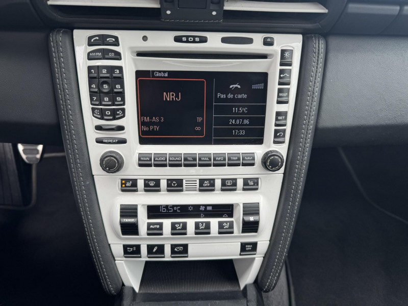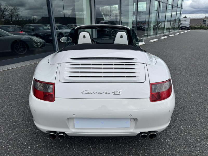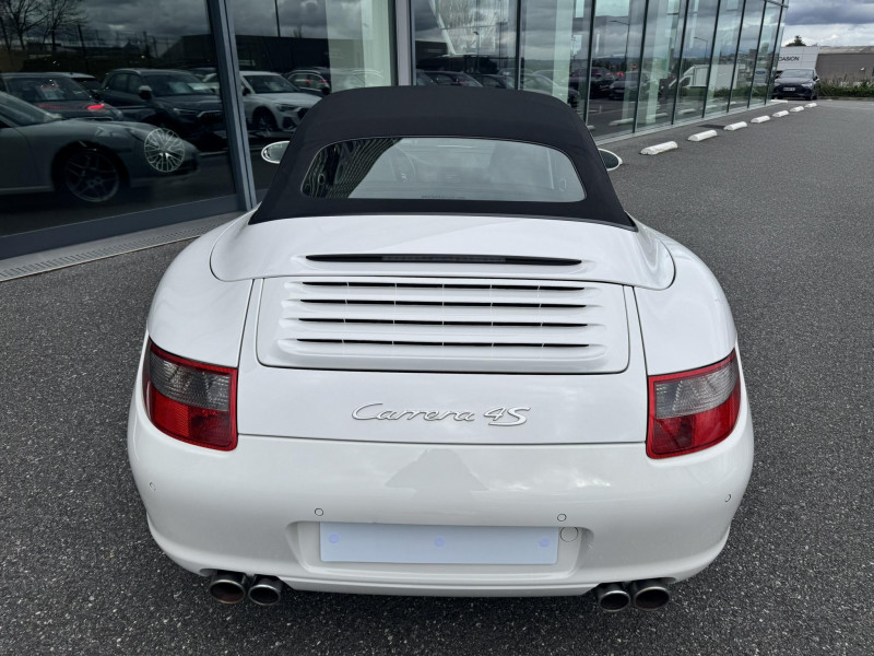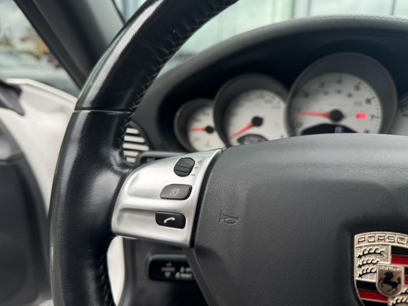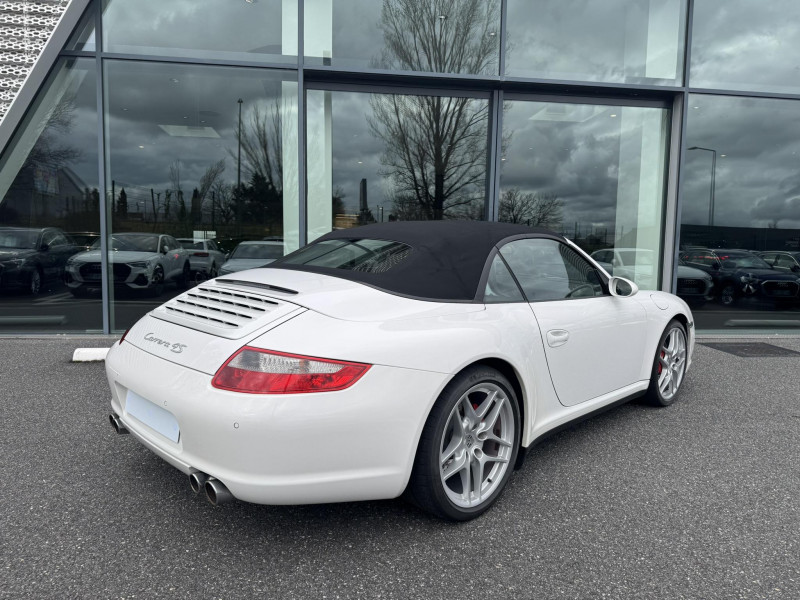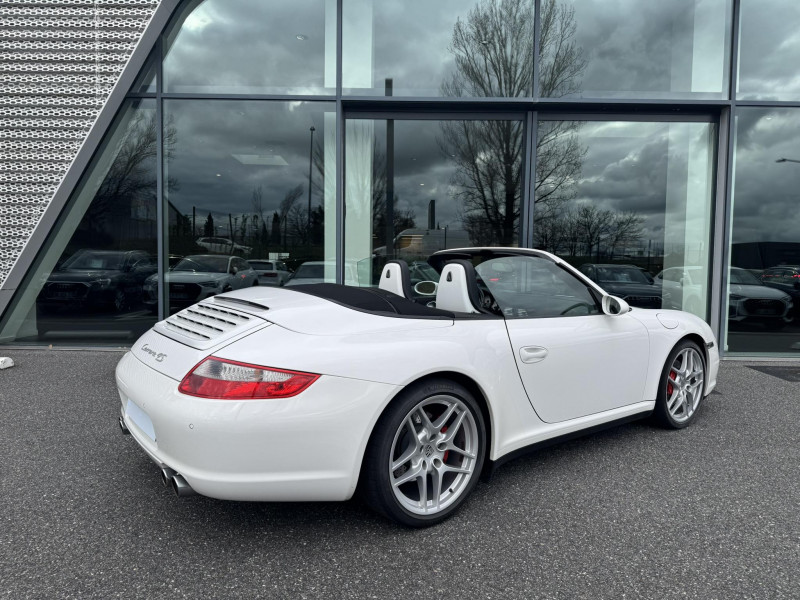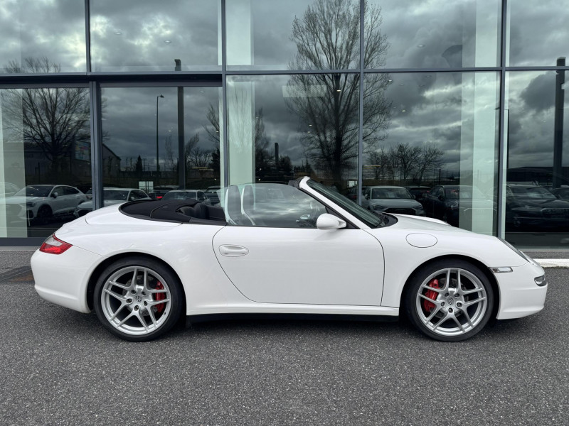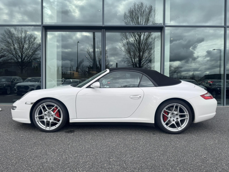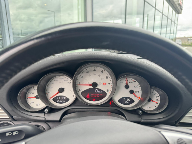 Arceau de sécuritéà déploiement automatique / Capote entièrement électrique à ouverture automatique, lunette AR chauffante en verre / Ceintures de sécurité 3 points automatiques AV/AR, boucle de ceinture sur les sièges / Couvercle du coffre en Aluminium / Fond de compteur couleur aluminium / Jantes Carrera S 19" / Levier de vitesse et frein à main, poignées de portes, couvercles des rangements en cuir lisse / Pack Audio Plus, 9 HP, range-CD dans la boîte à gants / Phares bi-Xenon / Sièges AV cuir partiel / Volant sport 3 branches en cuir / 3ème feu stop / Affichage analogique: régime moteur, vitesse, pression et témperature d'huile, témperature de refroidissement et niveau d'essence / Affichage numérique: kilométrage total et journalier, heure, témperature extérieure et vitesse / Aileron AR télescopique / Alarme antivol / Bloc séparé de feux supplémentaires intégré dans bouclier feux de position, clignotants, anti-brouillard / Bouclier avec entrées d'air pour refroidissement / Boucliers AV et AR déformables avec pare-chocs intégrés en alliage / Boîte à gants verrouillable / Ciel de toit garni de tissu noir / Console centrale avec espace de rangement / Eclairage du plancher / Essuie-glaces AV à 2 vitesses de balayage et intermittence, buses doubles chauffantes / ISOFIX : Ancrages normalisés pour sièges enfants / Kit anti-crevaison avec compresseur électrique / Miroirs de courtoisie éclairés avec languette pare-soleil / Ouverture électrique du coffre et du capot moteur / Poignées des portière ergonomiques / Porsche Active Suspention Management (PASM) / Porsche Communication Management (PCM) avec pré-équipement pour téléphone portable et interface audi / Porsche Side Impact Protection System (POSIP) / Porte-gobelet AV / Pré-équipement pour montage ultérieur chargeur CD / Rangement supplémentaire derrière les sièges AR / Sièges AR rabattables séparément / Sièges AV avec appuis-tête intégrés / Sièges AV avec réglage électrique de dossier, réglage manuel en hauteur et profondeur / Système de gestion de stabilité Porsche (PSM,Porsche Stability Management) / Tableau de bord avec compte-tours central et affichage multifonctions / Verrouillage centraliséà télécommande incluant le déverrouillage du coffre / Vide-poches dans les portières / Vitres AV et AR électriques à impulsion avec dispositif anti-pincement / Vitres latérales AV avec revêtement hydrophobe / Vitres teintées thermo-isolées