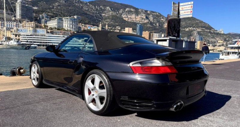 PORSCHE 996 TURBO CABRIOLET Année : 2004 Mise en circulation : 03/11/2004 Couleur extérieur : Noir Basalte Couleur intérieur : Noir Garantie : 12 Mois Véhicule en parfait état Véhicule 3 ème main immatriculée à Monaco 1er main Allemande, 2 eme main Luxembourg, 3 eme Main Monaco Suivit Complet Porsche, Entretien Porsche Classic Luxembourg Attestation Porsche Classic 02/2025 Dernière Révision Porsche Classic Luxembourg effectué le 25/02/2026 à 70 987 Km Traitement Céramique Complete (carroserie,jantes,plastiques,vitrage) + traitement des cuirs effectué sur le véhicule en Mars 2026 Options : • E80 - Intérieur finition aluminium • Y06 - Levier de vitesses et frein à main en cuir et aluminium • XPA - Volant sport 3 branches, intérieur cuir • XSU - Sièges avec rembourrage renforcé • 454 - Régulateur de vitesse • 692 - Chargeur CD • X54 - Sorties d’échappement en acier inoxydable • X70 - Baguettes de seuil inox avec inscription • XX1 - Tapis de sol avec inscription, bordés cuir • 586 - Soutien lombaire siège conducteur • XMZ - Partie arrière de la console centrale en cuir • 635 - Aide au stationnement (radars) • 666 - PCM 2 téléphone (GSM) • 668 - Commande téléphone PCM 2 • XSC - Écusson Porsche embossé dans appuie-têtes • 446 - Centres de roues concaves couleur carrosserie • 342 - Sièges chauffants gauche/droite réglables • 982 - Sièges avant en cuir raffiné Équipement : • 335 - Ceintures automatiques 3 points arrière • 480 - Boîte automatique 6 rapports • 562 - Airbags conducteur et passager • 571 - Filtre à charbon actif (habitacle) • 339 - Transmission intégrale • 440 - Antenne avec diversité • 273 - Rétroviseurs électriques et chauffants • 271 - Rétroviseur conducteur asphérique • 265 - Rétroviseur intérieur auto + capteur pluie • 266 - Rétroviseurs extérieurs anti-éblouissement auto • 659 - Ordinateur de bord • 499 - Version Allemagne • 241 - Pneus Bridgestone N3 / Michelin N1 • 424 - Compartiment CD • XV1 - Bande de dégivrage cuir • 534 - Antidémarrage 433 MHz • 620 - Accélérateur électronique (E-Gas) • 651 - Vitres électriques • 439 - Capote électrique • 071 - Version UE • 567 - Pare-brise teinté dégradé vert • X98 - Frein à main alu/cuir • 685 - Sièges arrière • 602 - Feu stop surélevé • 573 - Climatisation électronique • 437 - Siège confort gauche électrique • 438 - Siège confort droit électrique • 981 - Sellerie cuir (hors assises) • 274 - Miroirs de courtoisie éclairés • XCD - Porte-gobelets aluminium • 581 - Console centrale avant • 566 - Antibrouillards blancs • 465 - Feu antibrouillard arrière gauche • XCA - Baguettes décoratives alu (3 pièces) • 665 - PCM 2 module de base (radio) • 670 - PCM 2 navigation • 476 - Porsche Stability Management (PSM) • 441 - Pré-équipement radio • XJ4 - Rosette de contact en cuir • X97 - Bouton de levier alu/cuir • 288 - Lave-phares • 488 - Étiquetage allemand • 563 - Airbags latéraux • XCC - Buses d’aération aluminium • 029 - Suspension standard • 657 - Direction assistée • 939 - Sièges arrière en cuir • 537 - Mémoire siège conducteur • 680 - Système audio Bose • 197 - Batterie renforcée • 985 - Intérieur partiellement cuir • XTR - Garnitures de porte aluminium • 410 - Jantes Turbo II 18” • 661 - Système d’échappement renforcé • 551 - Coupe-vent • 601 - Phares Xénon N'hésitez pas à nous contacter pour plus informations. Véhicule disponible sur rendez-vous dans notre showroom : AD Supercars Monaco 9 Rue Baron Sainte Suzanne 98000 MONACO Financement possible (Crédit Classique, Ballon, LOA, LLD…) avec ou sans apport de 36 à 84 mois. Reprise de votre véhicule actuel et dépôt vente possible. Livraison disponible à travers la France et l’Europe sur demande. AD Supercars Monaco