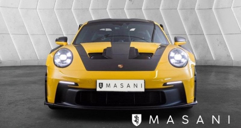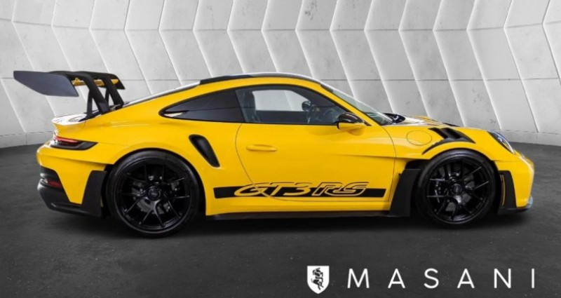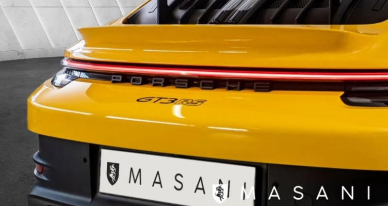 - Aucune option disponible pour le moment. - Description ? Masani Automobiles• Membre Vroomiz, label de confiance des professionnels de l’automobile• Adhérent FNA, Fédération Nationale de l’Automobile• Spécialiste véhicules Porsche au meilleur prix, origine certifiée? Véhicule présenté? Origine Centre Porsche?? Eligible garantie Porsche Approved?? Suivi 100% Porsche?? Rappels à jour?? TVA déductible? Couleurs• Extérieur : Jaune Racing• Intérieur : Intérieur Pack Weissach avec périmètres en cuir et Race-Tex étendus, noir-argent GT? LISTE DES OPTIONSPacks d’équipements•Pack Clubsport avec extincteur supplémentaire homologué route de 1 kg•Pack Weissach sans arceau de sécurité•Pack WeissachMoteur, transmission et châssis•Système de levage de l’essieu avant•Réservoir de carburant 90 litres•Freins Porsche Ceramic Composite Brake (PCCB) avec étriers peints en noir (finition brillante)Roues•Jantes peintes en noir (finition satinée)•Jantes forgées magnésium allégées GT3 RS 20/21 poucesIntérieur•Ceintures de sécurité jaune Racing•Cadran du compte-tours jaune Racing•Cadran du chronomètre Sport Chrono jaune Racing•Sangle d’ouverture de porte noire•Arceau de sécurité en plastique renforcé de fibres de carbone (CfK)Intérieur carbone•Baguettes de seuil de porte en carbone mat, éclairéesAudio et communication•Porsche Vehicle Tracking System Plus (PVTS Plus)Éclairage et visibilité•Phares principaux Matrix LED teintés avec Porsche Dynamic Light System Plus (PDLS Plus)•Feux arrière Exclusive Design•Rétroviseurs intérieur et extérieurs à atténuation automatique avec capteur de pluie intégré•Vitrage allégé et insonorisant incluant vitrage PrivacyConfort et systèmes d’assistance•ParkAssist arrière avec caméra de recul•Reconnaissance des panneaux de signalisation•Pré-équipement Porsche Dashcam? Liste des équipements de série sur demande? Informations pratiques• Prix hors carte grise (selon département)• Frais de mise à la route : 490 EUR TTC? DisponibilitéNous sommes joignables 7j/7 par téléphone et via la messagerie Leboncoin.? Ouvert uniquement sur rendez-vous.?? Tous les véhicules ne sont pas en stock : merci de nous contacter avant de vous déplacer.