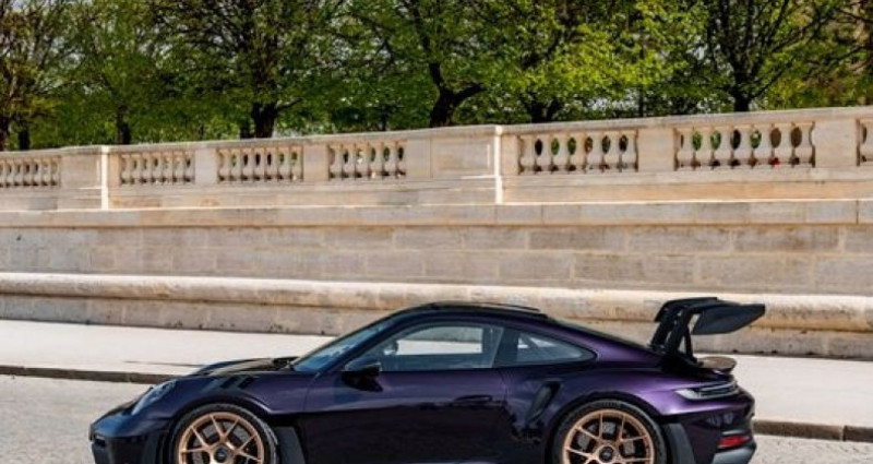 Porsche 911 GT3 RS (992) Mise en circulation : 09/08/2023 Kilométrage : 4 400 km Garantie : 6 mois Puissance : 525 ch - 4.0 L Flat-6 atmosphérique Transmission : Propulsion - Boîte PDK 7 rapports Historique & entretien : ?? Véhicule français ?? Première main ?? Jamais de piste ?? Entretien à jour réseau Porsche ?? PPF complet Configuration : Peinture PTS Viola Metallic — Pack Weissach — Jantes magnésium forgé 20/21’’ finition Neodyme — Intérieur Weissach Race-Tex noir / Argent GT — Phares PDLS + — Pack carbone complet extérieur (capot, rétroviseurs, aileron, …) Options & équipements : Audio & connectivité : • Navigation Porsche Communication Management (PCM) • Système audio Bose • Bluetooth / connectivité smartphone • Porsche Dashcam • Maintien de charge Porsche • Apple CarPlay Conduite & sécurité : • Pack Sport Chrono • Suspensions réglables (compression / détente) • Système de levage de l’essieu avant • Caméra de recul • Radars de stationnement • Régulateur de vitesse • Réservoir 90 litres • Housse Porsche historique (Pink Pig) Extérieur : • Jantes magnésium forgé Neodyme • Étriers de freins noir • Éléments carbone apparents (capot, aileron, rétroviseurs) • Aérodynamique active type F1 (DRS) • Feux arrière Exclusive Design • Triangle de fenêtre en carbone Intérieur : • Sièges baquets carbone • Fond du compte-tours en blanc • Fond de compteur en blanc • Harnais 6 points • Intérieur Race-Tex / Alcantara • Colonne de direction en cuir • Pack Luminosité Design • Baguettes de seuil de porte en carbone satiné illuminées • Projecteurs de porte à led avec signature • Pack intérieur carbone • Volant sport GT spécifique Dimensions & performances : • Longueur : env. 4,57 m • Largeur : env. 1,90 m • Hauteur : env. 1,32 m • Poids : env. 1 450 kg • 0 à 100 km/h : env. 3,2 s • Vitesse max : env. 296 km/h • Couple : 465 Nm • Moteur 4.0 L Flat-6 atmosphérique - 525 ch Possibilité de reprise sur véhicule de sport ou prestige. Visible au showroom sur rendez-vous. Galopin Automobile