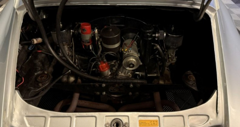 Cylindrée : 1582 cm3 Nb. Vitesse : 5 La Porsche 912 est une Porsche 911 propulsée par un moteur 4 cylindres à plat de Porsche 356. Remettons les chiffres dans leur contexte, la 912 est alors vendue 30 000 FR contre 42 000 FR pour une 911 2litres de 130 ch, quand le SMIG était alors de 300 FR, une Porsche a toujours été chère! La 912 reprend la mécanique fiable et économique de la 356 SC avec son moteur 4 cylindres opposés à plat (FLAT 4 ) de 1.6 de cylindrée et développant 90 ch contre 95 ch sur une 356. Refroidi par air, l'alimentation est assurée par deux carburateurs. La carrosserie et le châssis sont repris de la Porsche 911, avec cette ligne élégante, fluide et novatrice à l'époque et une tenue de route en nette hausse. Afin d'anticiper une baisse des commandes suite à l'augmentation de presque 50% du tarif entre une 356 et une 911, Porsche décida de proposer une version plus abordable et créa la 912 en 1965. Modèle d'entrée de gamme des Porsche 911, elle est produite de 1965 à 1969 La 912 (1965-1969) reprend une version 90 ch limité à 6 000 tr/min du moteur de la 356 SC associé à la caisse et au châssis de la 911. En raison du coût de production trop élevé du moteur « Flat 4 » en aluminium, elle est remplacée en 1970 par la 911 T au moteur « Flat 6 » en fonte, peu coûteux et de 110 ch Le modèle présenté ici est une LWB (Long Wheel Base), avec l?option boite 5 rapports. La caractéristique de la boite de vitesses de la 912 est la commande dite « en patte de chien » avec la première en bas à gauche alors que les autres rapports se trouvent en face les uns des autres, la marche arrière étant située pour sa part en face de la première en haut à gauche.