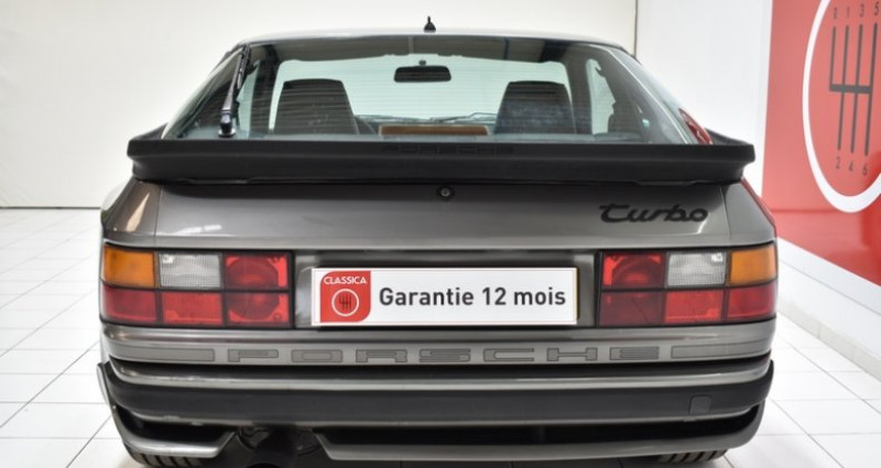 CONDUITE : à gauche CARTE GRISE : Normale NB PLACES : 4 NB CYL. : 4 en ligne PNEUMATIQUES : Usure Av 20% + Ar 25% * GARANTIE 12 MOIS incluse * REPRISES et LIVRAISON possibles * Frais de mise à la route en sus : 690 € TTC (1/4 de carburant, passage contrôle technique, préparation intérieure et extérieure) * Service « carte grise » et « carte grise collection » (dossier FFVE inclus) PORSCHE 944 Turbo (1985 - 1988) 17 627 ex. produits en version 220ch Même propriétaire depuis 1989 Matching color : « Steingrau LY7U » Matching intérieur : Simili cuir / tissus coloris « Schwarz » Manuel utilisateur d'origine Dossier de factures d'entretien (4.101 EUR.) Distribution et révision réalisé en 2024 à 209.000 km (facture 3.291 EUR.) - tendeur de courroie - galets tendeurs - courroie crantée - courroie accessoire - courroie trapézoïdale - pompe à eau - thermostat - liquide de refroidissement - sonde température d'eau - 4 bougies - filtre à huile - filtre à carburant - huile moteur 5W30 - batterie Disques de frein arrière neufs à la livraison 4 Jantes aluminium en 16'' « Téléphone » 4 pneumatiques GOODYEAR Rétroviseurs électriques Sellerie en cuir/tissus coloris « Schwarz » Siège conducteur avec réglage électrique Accoudoir central en simili cuir coloris « Schwarz » Banquette arrière rabattable Instrumentation de bord VDO d'origine Contre porte simili cuir/moquette coloris « Schwarz » Climatisation Vitres électriques Horloge digitale Autoradio cd ALPINE Volant 4 branches en cuir d'origine Pommeau de vitesse en cuir d'origine Ciel de toit en simili cuir perforé coloris « Schwarz » Moquettes coloris « Schwarz » Roue de secours « Space saver » Trousse à outils Compresseur Ecrou anti-vol Extincteur Cric Historique du modèle : Dans les années 1980, PORSCHE pense alors arrêter la carrière de sa 911 vieillissante et se concentre sur les moteurs avant, plus faciles à utiliser au quotidien. Après le succès commercial de la 924, la firme de Stuttgart réfléchit à un modèle plus performant et moins connoté « entrée de gamme ». Ce sera la 944. Fort de son expérience de motoriste F1 avec TAG, PORSCHE qui maîtrise parfaitement la technologie turbo l'applique à sa 944 qui se voit pousser des ailes et passe de 163 à 220 chevaux. Le couple maxi fait aussi un bon en avant spectaculaire (33,6 Mkg). L'ensemble est placé sur un châssis équilibré et très efficace grâce au système transaxle qui place la boîte très en arrière. La 944 Turbo se fera une place de choix dans la gamme PORSCHE, entre la 911 très radicale en conduite sportive avec son moteur en porte à faux arrière et la 928, plus puissante mais plus onéreuse et plus lourde donc d'avantage typée GT. Carrosserie / Extérieur : Le modèle présenté ici est une 944 Turbo livrée neuve en France en Mai 1988 dans son coloris « Steingrau LY7U » d'origine (« Matching color »). Cette dernière est aujourd'hui en bel état de présentation. Après un lustrage pro réalisé à l'orbitale par notre atelier, nous avons noté un léger gravillonnage de la face avant, un éclat de peinture corrigé sur le capot moteur ainsi que 3 petits coups. Nous avons également relevé un coup sur le pavillon de toit ainsi qu'un léger gravillonnage. Quelques éclats de peinture corrigé sont visibles sur l'arête de porte conducteur. Nous avons relevé quelques fines rayures sur le pare brise. Les pare-chocs sont en bon état, sans trace de choc ni déformation. Nous avons relevé des traces de frottement sur les contours. Les phares avant escamotables fonctionnent parfaitement et ne présentent aucune trace de fissure ni soucis d'étanchéité. Les 4 jantes d'origine en 16'' type « Téléphone » sont en bon état, sans trace de choc ni déformation malgré quelques traces de frottement sur les contours ainsi que sur le motif PORSCHE de la jante avant gauche. L'ensemble est monté en pneumatiques GOODYEAR affichant une usure de 20% à l'avant et de 25% à l'arrière. La centralisation des portes est non fonctionnelle. Cet exemplaire a conservé sa roue de secours « space saver » ainsi que sa trousse à outils, son compresseur et son cric d'origine. Parmi les équipements et options carrosserie intéressantes dont cet exemplaire est doté, nous avons relevé : Les 4 jantes « Téléphone » en 16'', et l'essuie-glace arrière. Habitacle : L'intérieur a conservé sa stricte configuration d'origine et apparaît en très bel état de présentation. La sellerie mixte en cuir / tissu coloris « Schwarz » est en très bon état d'origine malgré la présence d'une légère patine d'accès à bord et un léger accro sur le bourrelet du siège conducteur. Le siège conducteur avec réglage électrique est parfaitement fonctionnel. Les contre portes en simili cuir et moquettes coloris «Schwarz» sont également en très bon état, sans traces d'accès à bord, déformation ni décoloration. Le tableau de bord et sa casquette en simili cuir coloris « Schwarz » sont en très bon état, sans fissure ni déformation. L'ensemble de l'instrumentation de bord est parfaitement fonctionnel ainsi que l'horloge digitale d'origine. La radio d'origine a été remplacée par une autoradio cd ALPINE parfaitement fonctionnelle. Le volant 4 branches en cuir d'origine présente une patine d'usage. Nous avons relevé un accro sur le pommeau de vitesse en cuir. Le ciel de toit en simili cuir perforé coloris « Schwarz » est parfaitement tendu et sans défauts. Les moquettes coloris « Schwarz » sont en bon état, nous avons relevé une trace d'usure coté conducteur. Parmi les équipements et options intérieures intéressantes dont cet exemplaire est doté, nous avons relevé : La climatisation, le siège conducteur électrique, la banquette arrière rabattable, les vitres électriques et la radio cd ALPINE. Châssis : La mise sur le pont confirme une caisse saine, sans trace d'accident ni de corrosion structurelle