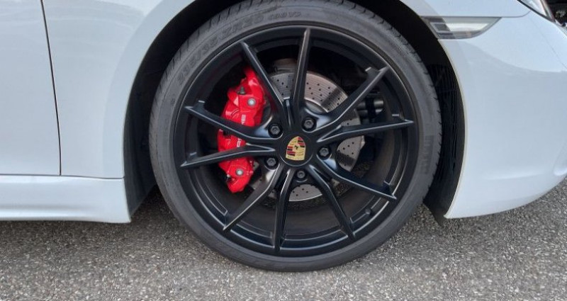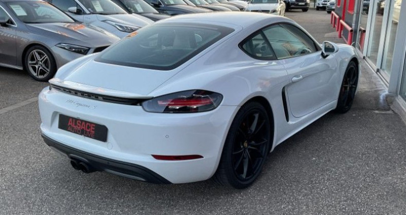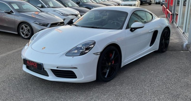Porsche 718 CAYMAN (982) 2.5 350CH S PDK EURO6, (Coupé), BLANC, 23cv, 2 portes, mise en circulation le 22-09-2017, garantie 6 mois (6 MOIS). 2 places, couleur intérieur : NOIR, longueur : 4,38 mètres, boîte de vitesse : automatique OPTIONS ET EQUIPEMENTS : Audio - Télécommunications - 10 Haut parleurs - Ecran tactile - Fonction MP3 - Kit mains-libres Bluetooth - Lecteur CD - Lecteur DVD - Lecteur carte SD - Prise USB - Prise auxiliaire de connexion audio - Prise iPod - Radio Conduite - Affichage des limitations de vitesse - Arrêt et redémarrage auto. du moteur - Follow me home - Régulateur de vitesse Extérieur - Assistance parking, avec caméra de recul - Becquet arrière - Boucliers AV et AR couleur caisse - Echappement à double sortie - Feux arrière à LED - Feux de freinage d'urgence - Feux de jour à LED - Jantes Alu - Pack SportDesign - Phares Bi-Xénon teintés incluant (PDLS) - Phares bi-xénon - Poignées ton carrosserie - Rétroviseurs dégivrants - Rétroviseurs électriques - Sortie d'échappement chromée Intérieur - Accoudoir central AV - Bacs de portes avant - Boite à gants fermée - Clim automatique - Climatisation automatique 2 zones - Compte tours - Ecran multifonction couleur - Filet anti-remous - Inserts de porte cuir - Lampe de coffre - Lampes de lecture à l'avant - Levier vitesse cuir - Lunette AR dégivrante - Lunette arrière - Ordinateur de bord - Ouverture des vitres séquentielle - Porte-gobelets avant - Prise 12V - Pédalier sport - Siège conducteur réglable en hauteur - Siège conducteur électrique - Siège passager réglable en hauteur - Siège passager à réglages électriques - Sièges avant sport - Sièges chauffants - Vitres avant électriques - Volant cuir - Volant réglable en profondeur et hauteur - Volant sport Sécurité - ABS - Aide au freinage d'urgence - Airbag conducteur - Airbag passager - Airbags latéraux avant - Airbags rideaux - Alarme - Alarme périmétrique - Antidémarrage électronique - Antipatinage - Contrôle élect. de la pression des pneus - EBD - ESP Autres équipements et informations : - Assistance parking - avec caméra de recul - Blanc - Châssis sport PASM (-20 mm) - Pack Sport Chrono avec commutateur - Cuir Noir Kilométrage non garanti. **TOUS NOS VEHICULES FONT L'OBJET D'UNE VERIFICATION DE SINISTRALITE ** **VEHICULES VISIBLES UNIQUEMENT SUR RENDEZ-VOUS ** **REPRISE / FINANCEMENT ** **EXTENSIONS DE GARANTIE POSSIBLES JUSQU'À 48 MOIS ** **PRIX AFFICHÉ HORS FRAIS D'IMMATRICULATION ET DE MISE EN CIRCULATION (489 euros) ** **ANNONCE SOUS RÉSERVE D'ERREUR DE RÉDACTION ET D'OPTIONS** Référence annonce : 5967
