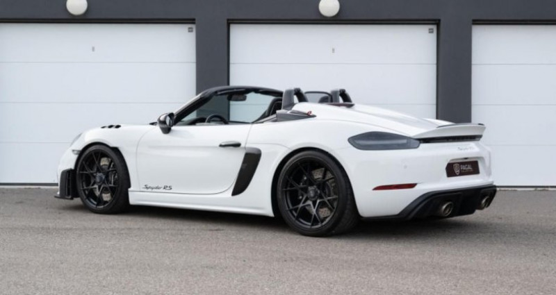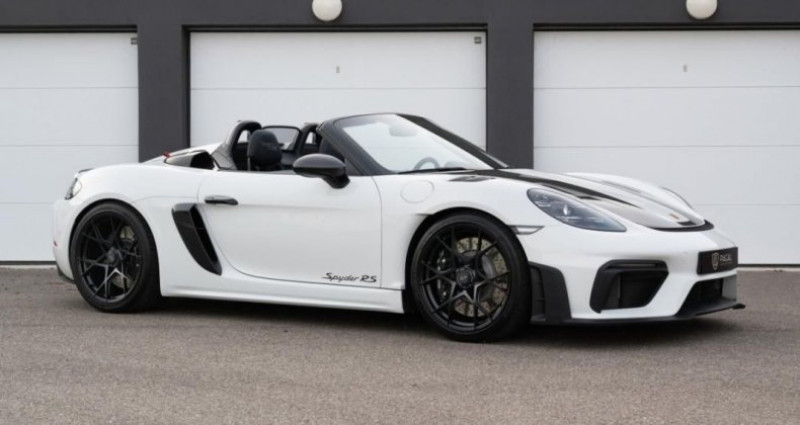 Porsche 718 SPYDER RS PDK | WEISSACH LIFT BOSE TVA FRANÇAISE cabriolet, blanc, première mise en circulation le 30/01/2024. Pagal Collection a le plaisir de vous proposer à la vente cette superbe Porsche 718 Spyder RS pack Weissach ! MALUS ÉCOLOGIQUE PAYÉ KILOMÉTRAGE D'ORIGINE NON ACCIDENTÉ TVA RÉCUPÉRABLE AUCUN FRAIS À PREVOIR GARANTIE 12 MOIS Couleur Extérieure : White 0Q Couleur Intérieure : Noir Options et équipements : Couleur extérieure Blanc (0Q) Pack Weissach Jantes 20 Spyder/GT4 noir satiné (XDK) Étriers de frein noir brillant (XBS) Feux arrière LED assombris (9P3 / XXP) Coques de rétroviseurs en carbone (XJW) Enjoliveurs de porte en carbone (XWC) Cache console centrale carbone (XHM) Couvercle de rangement Alcantara avec monogramme (XLG) Fond de compteurs blanc Carrara (XFJ) Cadran Chrono blanc (XGM) Boîte PDK 7 rapports (250) Différentiel autobloquant 40 % (220) Suspension pilotée PASM (475) Phares LED directionnels (602) Feux de jour LED (605) Lève-essieu avant (474) Pack Sport Chrono Plus (QR5) Contrôle pression pneus RDK 433 MHz (482) Valve TPM noire (UX7) Sièges baquets 918 Spyder (373 / 374) Intérieur cuir / Alcantara (975 / 981 / 991) Volant sport cuir (878) Pédalier sport + repose-pied sport (121 / 122) Climatisation électronique High (573) Pack éclairage intérieur (630) Rétroviseur intérieur auto (276) Rétroviseurs extérieurs atténuation auto (256) Réservoir 90 L (082) Pack acoustique (170) Porte-gobelets (585) Navigation High (7UG) MirrorLink / Apple CarPlay (9WT) Services en ligne Plus (EL5) Radio Premium (I8L) Réception radio numérique DAB (QV3) HomeLink 433 MHz (608) Deux interfaces USB/IPOD (UI2) Système audio Bose Premium (9VL) Pack sécurité VTS (7I2) Alarme + protection volumétrique (534) Capteur d'inclinaison (521) Feu antibrouillard gauche (465) Prix TTC : 219.900 € Nous gérons l'immatriculation de votre véhicule et proposons la reprise après expertise. Plus d'informations sur [URL masquée pour votre sécurité] — contactez-nous dès maintenant pour une visite. L'équipe Pagal Collection. Pagal Collection 8 Rue Amédée Bollée 68127 Sainte-Croix en Plaine - France (Visible de l'autoroute A35) *Sous réserve d'erreurs* OPTIONS ET ÉQUIPEMENTS : Autres équipements et informations : - Classe Crit'air : 1 - Puissance kilowatt : 368 kw - puissance réelle : 500 ch Référence annonce : 107985