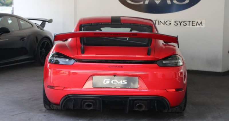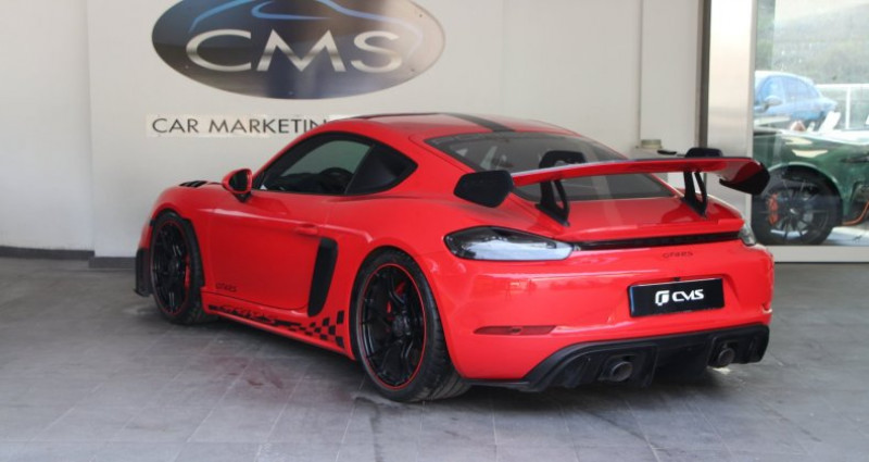 Porsche 718 Cayman GT4 RS 4.0 500 ch PDK coupé, rouge, 40 cv, 2 portes, couleur intérieure : noir, première mise en circulation le 24/06/2022, garantie 12 mois. ***** Belle configuration. Film de protection PPF. Entretien exclusif Porsche. Malus écologique inclus dans le tarif, vente possible hors immatriculation. ***** Voiture visible dans notre showroom sur rendez-vous. Tout type de financements possibles. Livraison dans toute la France. Liste d'options non-contractuelle. Suivez notre actualité sur instagram 2 places OPTIONS ET ÉQUIPEMENTS : Audio - Télécommunications : - Apple CarPlay avec reconnaissance vocale Siri Extérieur : - Assistance parking AR Intérieur : - Pack Interieur Carbone - Pack interieur cuir / Race-Tex - Panneaux de porte - Pack interieur cuir / Race-Tex - Tableau de bord - Sieges baquets integraux - climatisation : automatique - climatisation multi zone - intérieur : cuir Pack : - Cle du vehicule peinte en couleur exterieure avec etui en cuir - Jantes peintes en noir (finition satinee) - Pack Chrono et pre-equipement Laptrigger - Pack ClubSport - Pack exterieur logos contrastants - Pare-soleil en cuir - tapis de sol Sécurité : - Extincteur Autres équipements et informations : - Arceau de securite en Gris Arctique (finition satinee) - Interieur de serie Noir et Gris Arctique en cuir / Race-Tex - Classe Crit'air : 1 - Puissance kilowatt : 368 kw - dimension des jantes : 20 pouces - puissance réelle : 500 ch