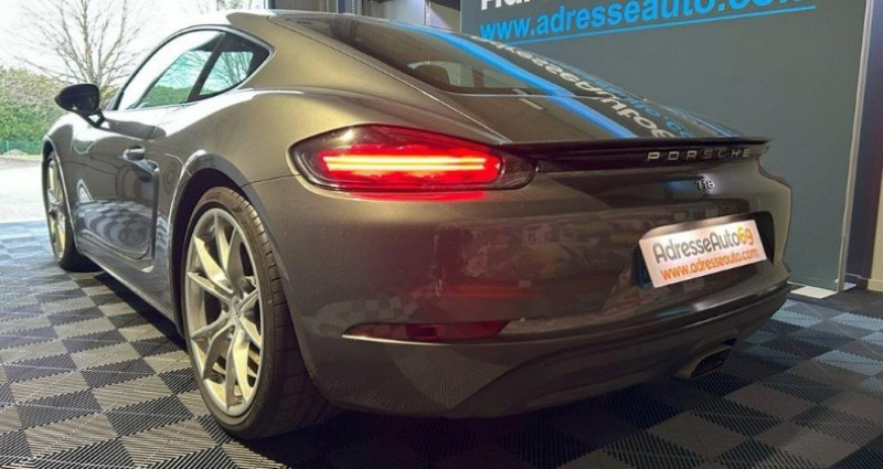 Cylindrée : 1988 cm3 Nb. Vitesse : 7 - 2 porte-gobelets côté passager derrière la baguette décorative du tableau de bord - Affichage numérique: vitesse, rapport engagé, kilométrage total, journalier et heure - Aileron AR à déploiement automatique - Airbags grand volume conducteur et passager - Alarme volumétrique - Assistant d?éclairage automatique avec éclairage d?accompagnement - Baguettes de seuil de porte avec inscription du modèle - Blocs optiques supplémentaires à DEL dans le bouclier AV avec les feux de positions - Boîte de vitesse Porsche Doppelkupplung (PDK) - Ciel de toit en tissu - Ciel de toit en tissu Noir - Climatisation avec filtre à charbon actif intégré - Coffres AV et AR - Combiné d'instruments avec compte-tours central et écran couleur haute définition de 4.6' - Concept de véhicule 2 places avec moteur central - Console centrale montante avec vide-poches ouvert et coffre de rangement fermé - Contour des vitres latérales en aluminium (finition brillante) - Couronne du volant - Crochets porte-vêtement au dos des sièges - Dégivrage de lunette AR - Direction directe électromécanique à rapport variable et impulsion - Ecrous antivol - Equipements de série 718 Boxster et 718 Cayman Teinte disponible : Noir - Essieu à jambes de force allégées à l'AV et à l'AR - Essuie-glaces de pare-brise avec balais d'essuie-glaces Aéro et buses de lave-glaces - Feux AR à DEL avec feux stop intégrés 4 points et feux de recul - Fonction 'Stop-Start' et croisière - Fonds des compteurs du combiné d'instruments (compte-tours compris) en Noir - Frein de parking électrique - Freins à étriers fixes monobloc en aluminium à 4 pistons à l?AV et à l'AR - Hayon AR à large ouverture avec lunette AR chauffante - Housses des sièges en Alcantara similicuir - Jantes Cayman 18' - Kit anti-crevaison avec compresseur électrique - Lève-vitres électriques à impulsion et abaissement automatique de la vitre - Ligne d'échappement à double flux avec sortie centrale en Acier spécial - Phares Bi-Xénon avec feux de jour à DEL intégrés - Porsche Communication Management (PCM) avec pré-équipement pour téléphone portable et interface audi - Porsche Side Impact Protection System (POSIP) comprenant : protection anti-encastrement latérale dans les portes - Porsche Stability Management (PSM), ABS inclus avec fonctions de freinage avancées - Prise 12 Volts dans le plancher côté passager - Propulsion - Rétroviseurs extérieurs sur panneaux de portes - Sièges sport (2 réglages) - Sièges Sport avec réglage électrique du dossier et réglage manuel de la profondeur et de la hauteur - Signature Porsche sur baguette décorative et désignation du modèle sur le bouclier AR - Sound Package Plus - Spots de lecture - Structure légère intélligente combinant l'aluminium et l'acier - Système anti-démarrage avec verrouillage centralisé et télécommande - Système d'alarme avec alarme volumétrique - Système de contrôle de la pression des pneus (TPM) - Teintes extérieures de série unies : Blanc, Jaune Porsche Racing, Rouge Indien, Noir - Teintes intérieures de série: Noir, Gris Quartz, Beige Louxor - Touche Sport pour activation des réglages dynamiques du moteur et de la transmission - Ventilation avec fonction recyclage et dégivrage - Vide-poches dans les portières - Vitrage athermique teinté vert - Volant Sport diamètre de 375 mm, réglable manuellement en profondeur et en hauteur