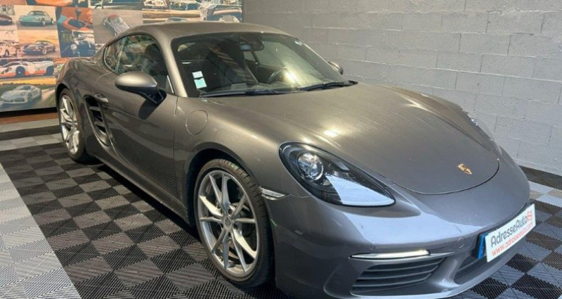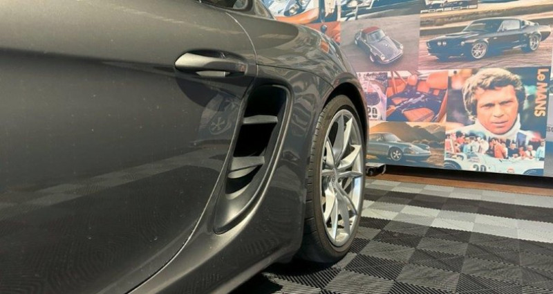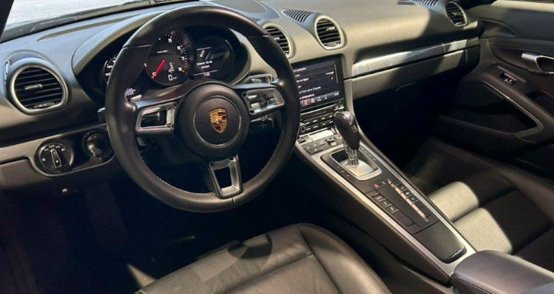 Cylindrée : 1988 cm3 Nb. Vitesse : 7 - 2 porte-gobelets côté passager derrière la baguette décorative du tableau de bord - Affichage numérique: vitesse, rapport engagé, kilométrage total, journalier et heure - Aileron AR à déploiement automatique - Airbags grand volume conducteur et passager - Alarme volumétrique - Assistant d?éclairage automatique avec éclairage d?accompagnement - Baguettes de seuil de porte avec inscription du modèle - Blocs optiques supplémentaires à DEL dans le bouclier AV avec les feux de positions - Boîte de vitesse Porsche Doppelkupplung (PDK) - Ciel de toit en tissu - Ciel de toit en tissu Noir - Climatisation avec filtre à charbon actif intégré - Coffres AV et AR - Combiné d'instruments avec compte-tours central et écran couleur haute définition de 4.6' - Concept de véhicule 2 places avec moteur central - Console centrale montante avec vide-poches ouvert et coffre de rangement fermé - Contour des vitres latérales en aluminium (finition brillante) - Couronne du volant - Crochets porte-vêtement au dos des sièges - Dégivrage de lunette AR - Direction directe électromécanique à rapport variable et impulsion - Ecrous antivol - Equipements de série 718 Boxster et 718 Cayman Teinte disponible : Noir - Essieu à jambes de force allégées à l'AV et à l'AR - Essuie-glaces de pare-brise avec balais d'essuie-glaces Aéro et buses de lave-glaces - Feux AR à DEL avec feux stop intégrés 4 points et feux de recul - Fonction 'Stop-Start' et croisière - Fonds des compteurs du combiné d'instruments (compte-tours compris) en Noir - Frein de parking électrique - Freins à étriers fixes monobloc en aluminium à 4 pistons à l?AV et à l'AR - Hayon AR à large ouverture avec lunette AR chauffante - Housses des sièges en Alcantara similicuir - Jantes Cayman 18' - Kit anti-crevaison avec compresseur électrique - Lève-vitres électriques à impulsion et abaissement automatique de la vitre - Ligne d'échappement à double flux avec sortie centrale en Acier spécial - Phares Bi-Xénon avec feux de jour à DEL intégrés - Porsche Communication Management (PCM) avec pré-équipement pour téléphone portable et interface audi - Porsche Side Impact Protection System (POSIP) comprenant : protection anti-encastrement latérale dans les portes - Porsche Stability Management (PSM), ABS inclus avec fonctions de freinage avancées - Prise 12 Volts dans le plancher côté passager - Propulsion - Rétroviseurs extérieurs sur panneaux de portes - Sièges sport (2 réglages) - Sièges Sport avec réglage électrique du dossier et réglage manuel de la profondeur et de la hauteur - Signature Porsche sur baguette décorative et désignation du modèle sur le bouclier AR - Sound Package Plus - Spots de lecture - Structure légère intélligente combinant l'aluminium et l'acier - Système anti-démarrage avec verrouillage centralisé et télécommande - Système d'alarme avec alarme volumétrique - Système de contrôle de la pression des pneus (TPM) - Teintes extérieures de série unies : Blanc, Jaune Porsche Racing, Rouge Indien, Noir - Teintes intérieures de série: Noir, Gris Quartz, Beige Louxor - Touche Sport pour activation des réglages dynamiques du moteur et de la transmission - Ventilation avec fonction recyclage et dégivrage - Vide-poches dans les portières - Vitrage athermique teinté vert - Volant Sport diamètre de 375 mm, réglable manuellement en profondeur et en hauteur