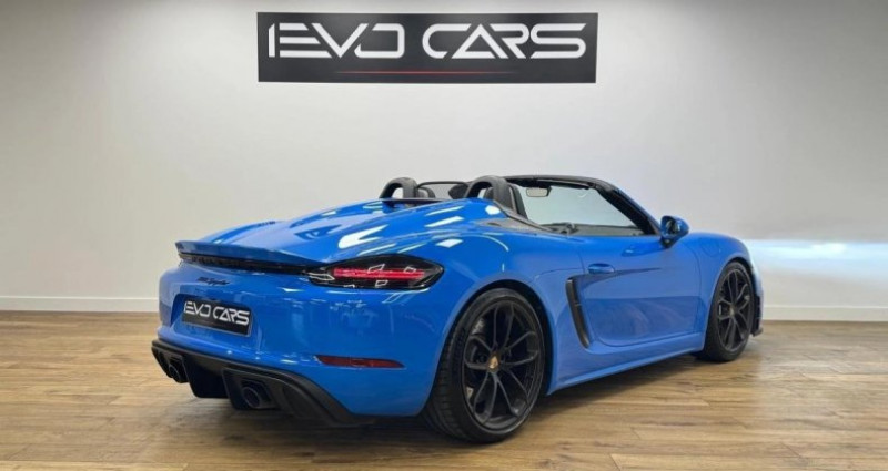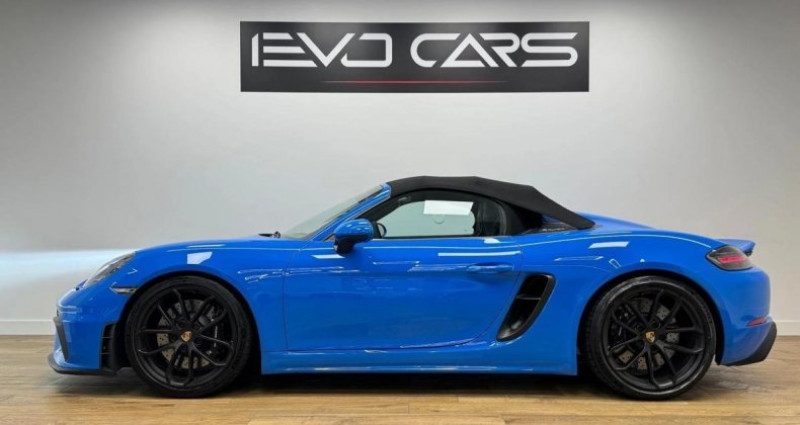 OPTIONS : - Jantes 718 Spyder 20 pouces en noir - Porsche Sports Exhaust (PSE) - Phares à LED incluant le Porsche Dynamic Light System Plus (PDLS+) - Porsche Active Suspension Management (PASM) - Porsche Torque Vectoring (PTV) avec différentiel arrière à glissement limité mécanique - Module de navigation pour Porsche Communication Management - BOSE® Surround Sound System - Apple CarPlay® - Pack intérieur carbone - Insert décoratif de la console centrale carbone - Pack Chrono - Boîte de vitesses Porsche Doppelkupplung (PDK) - Sélecteur PDK en alcantara - Intérieur tout cuir avec éléments en Race-Tex - Couvercle du coffre de rangement en Race-Tex avec monogramme PORSCHE - Surpiqûres bleues - Régulateur de vitesse - Réservoir 64| - Assistance parking arrière avec caméra de recul - Sièges chauffants - Options multifonction et chauffage du volant - Climatisation automatique bi-zone - Bouchon de réservoir en Exclusive Design - Clés du véhicule peintes Couleur carrosserie Bleu Requin. ENTRETIENS : - Suivi Porsche - Dernier entretien 5.547km - 09/25 - Pneus neufs INFORMATIONS : - Origine France - Double des clés - CarVertical vierge ==================================== Bienvenue chez EvoCars, Nous sommes fiers de vous présenter une sélection exclusive de véhicules sportifs et premium, alliant puissance et élégance. Chaque véhicule de notre stock a été rigoureusement inspecté et soigneusement entretenu pour garantir une qualité exceptionnelle et une satisfaction totale. Les véhicules sont visibles SUR RENDEZ-VOUS, une garantie légal de 6 mois (voir conditions avec un vendeur) est automatiquement inclut dans le prix de vente, leurs tarifs sont hors frais de services et nous pouvons proposer des extensions de garantie allant jusqu'à 48 mois. Financement possible en crédit classique ou en LOA sur demande. La livraison de votre véhicule est possible nationalement (sur devis). N'hésitez pas à nous contacter pour plus informations. Nous sommes à 3 minutes de la sortie d'autoroute de Villefranche-sur-Saone Nord au 731 Rue de la Farnière, 69400 à Gleizé. L'équipe EvoCars Lyon NB. Places : 2 Controle Technique : OK