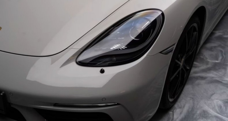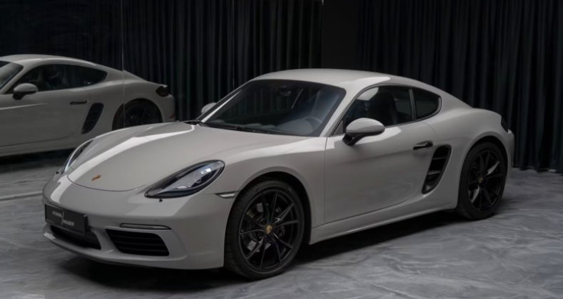 Très élégante Cayman 718 300CV de couleur Gris Craie, Sellerie en cuir complet Noir, Faible kilométrage, Entretiens exclusivement effectués en centres Porsche, Carnet d'entretien Porsche à jour, Look + Etat Magnifiques. Film PPF complet de protection sur la face avant. Echappement Sport déconnectable, Rétroviseur extérieur avec fonction anti éblouissement automatique, Mirror Link( AppleCarPlay), Assistance stationnement Avant et Arrière, Caméra de recul, 2X Interfaces USB/ IPOD, Jantes Carrera S IV 20 avec finition satinée noir, Pack Sécurité VTS (avec PCC) , Réglage automatique de la vitesse Tempomat, Feux bi-Xénon avec éclairage en courbe dynamique + Système lave-phares, Rétroviseur intérieur à anti éblouissement automatique, Volant Sport GT en cuir + Palettes, Détection de panneaux de signalisation, Appareil de Navigation High tactile, Module téléphone Bluetooth avec boitier de couplage, Autoradio Premium 2ieme génération, Système lave phare, Sièges Sports Plus avec coques de dossiers + Chauffants + Ecussons Porsche en relief sur les appui-têtes, Protection piéton, Contrôle de la pression des pneus RDK, Climatisation Automatique bi-zone, Fonction Start & Stop, Réception radio DAB HD, Pare brise teinté dégradé, Commande vocale, Servotronic direction assistée Plus, Réservoir 64 litres, Isofix, Ceintures de sécurité de couleur Rouge, Sellerie en cuir complet + Tableau de bord avec surpiqûres + Panneaux de portes en cuir. Boite vitesse automatique PDK 7 rapports à double embrayage. Immat + CG France en sus.