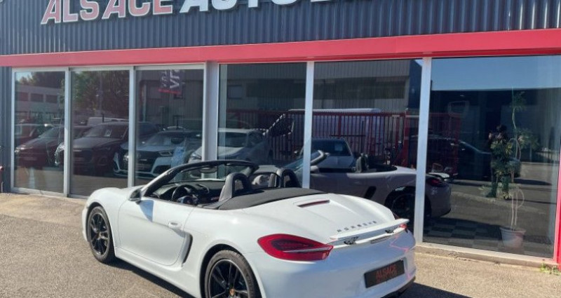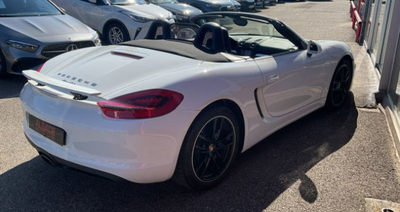 Porsche BOXSTER (981) 2.7 265CH PDK, (Cabriolet), BLANC, 17cv, 2 portes, mise en circulation le 11-07-2014, garantie 12 mois (12 MOIS). 2 places, couleur intérieur : NOIR, longueur : 4,37 mètres, boîte de vitesse : automatique OPTIONS ET EQUIPEMENTS : Audio - Télécommunications - Ecran tactile - Fonction MP3 - Lecteur CD - Prise auxiliaire de connexion audio - Radio Conduite - Arrêt et redémarrage auto. du moteur - Châssis sport (- 20 mm) - Follow me home - Sièges sport Extérieur - Assistance parking avant et arrière - Becquet arrière - Boucliers AV et AR couleur caisse - Buses de lave-glace chauffantes - Capote souple - Capote électrique - Feux arrière à LED - Feux de jour à LED - Phares halogènes - Poignées ton carrosserie - Rétroviseurs dégivrants - Rétroviseurs électriques - Sortie d'échappement chromée Intérieur - Accoudoir central AV avec rangement - Bacs de portes avant - Boite à gants fermée - Clim automatique - Climatisation automatique 2 zones - Compte tours - Ecran multifonction couleur - Inserts de tableau de bord métal - Lampe de coffre - Lampes de lecture à l'avant - Levier vitesse cuir - Lunette AR dégivrante - Lunette arrière - Miroir de courtoisie conducteur - Miroir de courtoisie passager - Ordinateur de bord - Ouverture des vitres séquentielle - Porte-gobelets avant - Prise 12V - Siège conducteur réglable en hauteur - Siège conducteur électrique - Siège passager rabattable - Siège passager à réglages électriques - Sièges avant sport - Température extérieure - Verrouillage centralisé des portes - Verrouillage centralisé à distance - Vitres avant électriques - Volant cuir - Volant réglable en profondeur et hauteur - Volant sport Sécurité - ABS - Aide au freinage d'urgence - Airbag conducteur - Airbag passager - Airbags latéraux avant - Airbags rideaux - Antidémarrage électronique - Antipatinage - Contrôle élect. de la pression des pneus - EBD - Régulateur de couple d'inertie Autres équipements et informations : - Blanc - Jantes peinte en Noir Kilométrage non garanti. Référence annonce : 5945