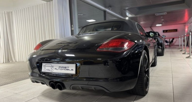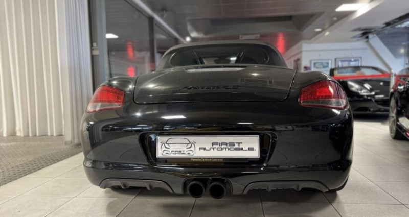 EQUIPEMENTS ================== - Série limitée seulement 987 exemplaires produits ! First Automobile vous propose ce rare Boxster S dans sa finition Black Edition disposant d'un niveau d'équipement de série complet ainsi qu'une puissance portée à 320cv par un moteur 6 cylindres à plat d - le tout - accouplé à une boîte Mécanique à 6 Rapports. Très bel état d'origine. Exemplaire Numéro 721. En détail : Double sorties d'échappement noires - Baguette décorative de tableau de bord noire - Système d'aide au stationnement - Tempomat Régulateur de vitesse - Feux de virage dynamiques xénon plus PDLS + Système lave-phares - Volant sport Design cuir - PCM 3 Navigation GPS Europe Tactile & Offroad + Lecteur CD + Bluetooth Téléphone - Interface multimédia USB/Aux - Jantes Boxster Spyder 19 - Finition spéciale Black Edition - Fonds de compteurs et chronomètre noirs - Rétroviseurs intérieur et extérieur anti-éblouissement - Capteur de pluie - Système lave-phares - Sièges Sports Plus avec coques de dossiers + Chauffants + Ecussons Porsche en relief sur les appuie-têtes - PSM - Windschott Pare-vent - Ceintures de sécurité de couleur noire - Pare-brise teinté dégradé - Feux de jour à LED - Pack Sport Chrono Plus - Pack audio Porsche ASK - Baguettes de seuils de portes en acier spécial avec inscription - Echappement sport déconnectable XLF - Coffre de rangement sur capot moteur - Ordinateur de bord - Sellerie en cuir complet + Tableau de bord avec surpiqûres + Panneaux de portes en cuir avec surpiqûres - Carnet d'entretien Porsche à jour. Pas de malus à prévoir - Carte grise 1/2 tarif Fin 2010 - Porsche peu de temps après la 911 Black Edition - lance le Boxster S Black Edition. Il s'agit d'un Boxster S classique - qui reprend la mécanique un peu plus poussée du Boxster Spyder. Cette série limitée full black - des échappements aux jantes en passant par les grilles d'aération - plus que sur la mécanique joue la carte de l'équipement. De série - elle propose les Jantes Spider en noir - les bi-xénons - le GPS - le régulateur - et toutes les baguettes et autres accessoire en Noir bien sur ! * Nous apportons un maximum de soin à la saisie de nos fiches véhicules - toutefois des erreurs de descriptif des options sont possibles.