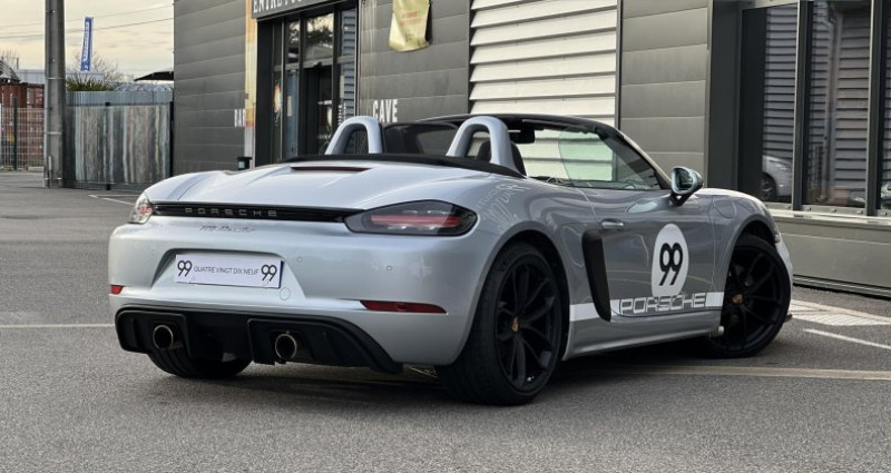 ======= OPTIONS ======= Affichage des limitations de vitesse Apple carplay avec reconnaissance vocale siri Direction assistée servotronic plus Module de navigation incluant porsche connect PAck intérieur cuir avec sièges en partiel cuir noir rouge bordeaux Assistance Parking avant et arrière Climatisation automatique bi-zone Habillage de l'arceau de sécurité peint en couleur extérieure Jantes Carrera Classic 20 pouces Pack fumeur Pack intérieur Cuir Pack Sport Chrono Pare-brise teinté dégradé Phares à DEL avec fonction Porsche Dynamic Light System Plus (PDLS+) Radio Numérique Régulateur de vitesse Réservoir 64l Rétroviseurs intérieur et extérieurs avec fonction antiéblouissement automatique et capteur de pluie intégré Sièges chauffants Tapis de sol Volant multifonctions chauffant Volant sport GT ======= EQUIPEMENTS DE SERIE ======= 2 porte-gobelets Affichage numérique : vitesse, rapport engagé, kilométrages total et journalier Aileron arrière à déploiement automatique Airbags grand volume pour le conducteur et le passager Arceau de sécurité fixe Assistant d éclairage automatique avec éclairage d accompagnement Baguettes de seuil de porte avec inscription du modèle Bloc optique supplémentaire à DEL dans le bouclier avant avec feux de position, clignotants et rappels de clignotant latéraux Capote en tissu entièrement électrique et automatique et une lunette arrière chauffante électrique en verre rigide Climatisation avec filtre à charbon actif intégré Coffre à l avant et à l arrière Combiné d'instruments avec compte-tours central et écran couleur haute définition de 4,6 pouces Console centrale montante avec un vide-poche ouvert et un autre fermé Couronne de volant, levier de vitesses et insert de la poignée de porte avec revêtement en Cuir lisse Crochets porte-vêtement au dos des sièges Dégivrage de la lunette arrière Ecrous antivol Essieu à jambes de force allégées à l avant et à l arrière Essuie-glaces de pare-brise avec balais d essuie-glaces Aero et buses de lave-glace Feux arrière à DEL avec feux stop intégrés 4 points et feux de recul Ligne d échappement à double flux avec sortie centrale en Acier spécial Phares bi-xénon avec éclairage jour à DEL Porsche Communication Management (PCM) avec pré-équipement pour téléphone portable et interface audio Porsche Side Impact Protection System (POSIP) comprenant une protection anti-encastrement latérale installée dans les portières, des airbags thorax logés dans les bandes latérales des sièges et des airbags de tête intégrés aux panneaux de Porsche Stability Management (PSM), ABS inclus, avec fonctions de freinage avancées Prise de courant (12 V) dans le plancher côté passager Rétroviseur extérieur sur panneau de porte, chauffant, réglable électriquement, asphérique côté conducteur Saute-vent treillissé Sièges sport avec réglage électrique des dossiers et réglage manuel de la profondeur et de la hauteur des assises Signature « PORSCHE » sur baguette décorative et désignation du modèle sur le bouclier arrière, en Argent Sound Package Plus, 6 haut-parleurs, puissance totale de 110 watts avec amplificateur intégré et traitement numérique des signaux Spots de lecture, éclairage d orientation et de démarreur à DEL, ainsi qu éclairage du coffre et de la boîte à gants Structure légère intelligente combinant l aluminium et l acier Système antidémarrage avec verrouillage centralisé et télécommande Vide-poches dans les portières avant Vitres athermiques teintées vertes Volant sport, diamètre de 375 mm, réglable manuellement en profondeur et en hauteur Nb. Vitesses : 7 Conso Mixte : l/100