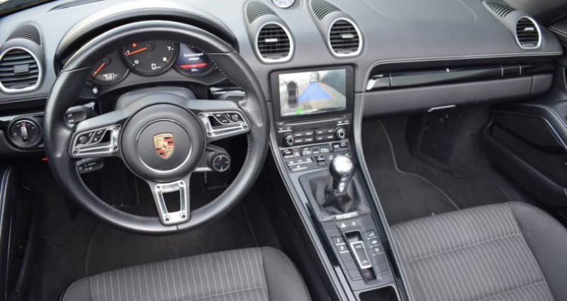 Première Main : Oui Nb. Vitesse : 8 Garantie : 12 Mois MBP Équipements spéciaux : Première main, boîte de vitesses manuelle à 6 rapports, rétroviseurs extérieurs rabattables électriquement, ParkAssist avant et arrière avec caméra de recul, régulateur de vitesse, système d’assistance à la conduite : reconnaissance des panneaux de signalisation (assistance à la limitation de vitesse), pare-brise teinté gris, tapis de sol en velours Porsche, pack éclairage intérieur / pack design lumière, pack intérieur 718 T avec sellerie cuir étendue comprenant : (panneaux de porte, console centrale, boîte à gants et tableau de bord revêtus de cuir avec surpiqûres décoratives argent GT), poignées de porte et ceintures de sécurité argent GT, climatisation automatique bizone, réservoir de carburant agrandi : 64 litres, volant multifonctions en cuir réglable en hauteur et chauffant, peinture métallisée Deep Black Metallic, console centrale côté passager avec filet de rangement, module de navigation incluant Connect Plus pour Porsche Communication Management (PCM), réception radio numérique (DAB+), sièges avant chauffants, système audio surround BOSE, pack Sport Chrono. Système d'échappement sport à clapets, phares bi-xénon, suspension sport PASM, système Start/Stop, monogramme Boxster T sur les portes, capote entièrement automatique. Prix catalogue neuf : 82 545 €. Équipements supplémentaires : airbags conducteur et passager, combiné d'instruments à fond noir, rétroviseur extérieur asphérique (gauche), rétroviseurs extérieurs à réglage électrique. Rétroviseurs extérieurs réglables et chauffants, coque supérieure peinte en gris, phares bi-xénon, clignotants à LED, étriers de freins anodisés noirs, ciel de toit noir, écrous antivol, allumage automatique des phares, porte-gobelets, aileron arrière à déploiement électrique, feux arrière à LED, lunette arrière chauffante, intérieur en cuir lisse noir, inserts de tableau de bord laqués noir laqué, système d'airbags rideaux Porsche Side Impact Protection System (POSIP), pack cuir, volant sport GT en cuir, colonne de direction réglable, monogramme sur les portes, monogramme peint à l'arrière, moteur turbo 2.0 L - 220 kW avec catalyseur, Porsche Car Connect, Porsche Car Connect incl. Système de suivi Porsche Vehicle Tracking System Plus, Porsche Torque Vectoring (PTV), kit de réparation de pneus, système de surveillance de la pression des pneus, faibles émissions selon la norme Euro 6d-TEMP, levier de vitesses/sélecteur de vitesses en cuir, sellerie Sport-Tex/cuir, système d'échappement sport, pack Sport Chrono, suspension sport à contrôle électronique (PASM), sièges sport avec dossiers peints, sièges sport Plus (réglables électriquement en 2 positions), système Start/Stop, capote électrique, vitres teintées, déflecteur d'air
