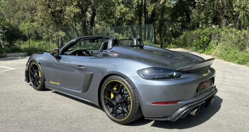 - Système de navigation Porsche Communication Management (PCM) - Sièges baquets intégraux en carbone - Intérieur en cuir et Race-Tex avec surpiqûres contrastées - Climatisation automatique bi-zone - Système audio Bose Surround Sound - Jantes alliage 20 pouces - Système Porsche Active Suspension Management (PASM) - Capote en tissu à commande manuelle - Feux LED avec Porsche Dynamic Light System (PDLS) - Pack Sport Chrono avec mode Track - Aide au stationnement avant et arrière - Caméra de recul - Régulateur de vitesse - Système de freinage haute performance en composite - Volant sport multifonction en Alcantara - Airbags frontaux et latéraux - Rétroviseurs extérieurs rabattables électriquement - Échappement sport avec sorties spécifiques - Phares automatiques - Système d’antipatinage et contrôle de stabilité (Porsche Stability Management - PSM) PORSCHE BOXSTER 4.0 500 SPYDER RS 1er mise en circulation 23/05/2024 Véhicule Français Taxe payée Gris Vanadium Métallisée Intérieur Pack Weissach Pack Weissach Réservoir 90 litres PCCB Porsche Ceramic Composite Brake Régulateur de Vitesse Système de levage de l' essieu avant Capote Noire Pack Luminosité Phares à LED Dynamic Assistance Parking avec caméra Tapis de Sol Sound Bose Pack Sport Chrono Jantes Peintes en Noir Satinée Ceintures de sécurité Jaune Racing Habillage de la Colonne Pack intérieur coutures Pack Full Carbone Full PPF
