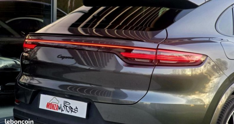 Porsche CAYENNE COUPE (9YB) 3.0 V6 462CH E-HYBRID, (S.U.V.), GRIS C, 22cv, 5 portes, mise en circulation le 25-11-2021, garantie 24 mois (24 MOIS). 4 places, couleur intérieur : NOIR, longueur : 4,93 mètres, boîte de vitesse : automatique OPTIONS ET EQUIPEMENTS : Audio - Télécommunications - 10 Haut parleurs - Appel d'Assistance Localisé - Borne Wi-Fi - Commandes du système audio au volant - Commandes vocales - Disque dur multimédia - Ecran tactile - Fonction MP3 - GPS Cartographique - Interface Media - Kit mains-libres Bluetooth - Lecteur CD - Lecteur DVD - Lecteur carte SD - Prise USB - Prise auxiliaire de connexion audio - Radio numérique DAB - Services connectés - Système de localisation par satellite - TMC Conduite - Aide au démarrage en côte - Arrêt et redémarrage auto. du moteur - Capteur de luminosité - Capteur de pluie - Commande du comportement dynamique - Démarrage sans clé - Follow me home - Limiteur de vitesse - Palettes changement vitesses au volant - Régulateur de vitesse - Système d'assistance à la descente - Système de maintien du véhicule en côte Extérieur - Becquet arrière - Caméra de recul - Coffre assisté électriquement - Echappement à double sortie - Eclairage au sol - Feux arrière à LED - Feux de freinage d'urgence - Feux de jour à LED - Feux de position à LED - Filtre à particules - Jantes Alu - Phares avant LED - Poignées ton carrosserie - Radar de stationnement AR - Radar de stationnement AV - Rétroviseurs dégivrants - Rétroviseurs rabattables électriquement - Rétroviseurs électriques - Sortie d'échappement chromée - Toit panoramique en verre Intérieur - Accoudoir arrière - Accoudoir central AV avec rangement - Appui-tête conducteur réglable hauteur - Appui-tête passager réglable en hauteur - Bacs de portes arrière - Bacs de portes avant - Banquette 40/20/40 - Banquette AR rabattable - Boite à gants fermée - Boite à gants éclairée et réfrigérable - Clim automatique bi-zones - Compte tours - Ecran multifonction couleur - Filtre à Pollen - Fixations Isofix aux places arrières - Inserts de porte cuir - Inserts de tableau de bord cuir - Lampe de coffre - Lampes de lecture à l'arrière - Lampes de lecture à l'avant - Lunette AR dégivrante - Miroir de courtoisie conducteur éclairé - Miroir de courtoisie passager éclairé - Ordinateur de bord - Ouverture des vitres séquentielle - Porte-gobelets arrière - Porte-gobelets avant - Prise 12V - Rangement sous siège conducteur - Rangement sous siège passager avant - Rétroviseur intérieur électrochrome - Siège cond. avec réglage lombaire électr - Siège conducteur réglable en hauteur - Siège conducteur électrique - Siège passager avec réglage lombaire - Siège passager réglable en hauteur - Siège passager à réglages électriques - Sièges avant sport - Tablette cache bagages - Verrouillage centralisé à distance - Vitres arrière teintées - Vitres arrière électriques - Vitres avant électriques - Vitres teintées - Volant cuir - Volant multifonction - Volant réglable en profondeur et hauteur - Volant sport Sécurité - ABS - Aide au freinage d'urgence - Airbag conducteur - Airbag passager déconnectable - Airbags genoux conducteur et passager - Airbags latéraux avant - Airbags rideaux AV et AR - Alarme - Antidémarrage électronique - Antipatinage - BAS - Ceintures avant ajustables en hauteur - Contrôle de Traction - Contrôle de couple en courbe - Contrôle élect. de la pression des pneus - EBD - ESP - Freinage automatique d'urgence - Système de prévention des collisions - Système de sécurité post-collisions - Témoin de bouclage des ceintures AV Kilométrage garanti. ORIGINE FRANCE ENTRETIEN PORSCHE PROCHAINE REVISION A 98 000 Km ATTELAGE ELECTRIQUE JAMAIS UTILISER REVISION PORSCHE : 30 000 Km REVISION PORSCHE : 60 000 Km SHADOW BLACK Référence annonce : 1695