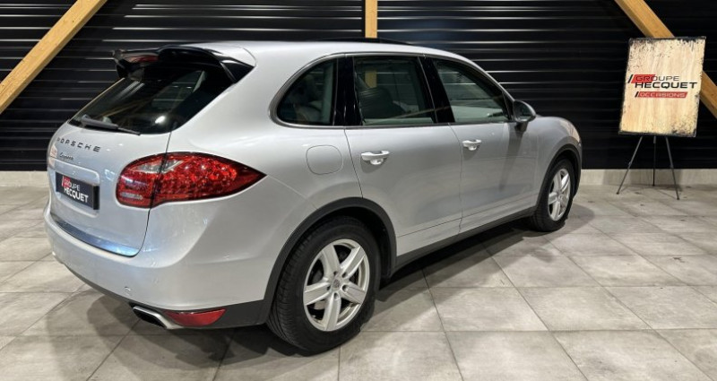 Cylindrée : 2967 cm3 Nb. Vitesse : 8 - Assistance automatique à l'utilisation des feux de croisement - Boîte de vitesses Tiptronic S à 8 rapports avec fonction Stop&Start automatique - Chauffage de la lunette AR avec arrêt automatique - Climatisation automatique - Concept d'éclairage de l'habitacle Temporisation automatique, éclairage avec variateur des poignées de porte, éclairage du plancher AV et AR, du cendrier, de la boîte à gants, du vide-poches de la console centrale, spots de lecture AV et AR, élairage des miroirs de courtoisie côtés conducteur et passager, éclairage du compartiment à bagages, des seuils de porte AV et AR, éclairage rouge des portes AV et AR ainsi que du hayon, et éclairage d'ambiance du hayon - Jantes Cayenne 18 - Pack Intérieur Noir finition brillante - Pré-équipement amovible de dispositif d'attelage de remorque - 3ème feu stop intégré au becquet AR - 5 prises de courant 12V - ABD (Freinage à effet différentiel) - ABS - Airbags grand volume conducteur et passager - Airbags latéraux AV intégrés aux sièges - Airbags rideaux - Anti-démarrage par transpondeur - Appuis-tête réglables (2 positions) sur 4 sièges (pas sur la place centrale AR) - ASR (sytème de régulation antipatinage) - Bouclier AV avec entrées d'air - Carrosserie galvanisée autoporteuse - Ceintures de sécurité 3 points avec prétensionneurs (sièges AV et AR) et limiteur d'effort de ceintu re (sièges AV) et ceinture 3 points sur la place AR centrale - Ciel de toi en tissu - Combiné d'instruments avec écran couleur TFT haute résolution 5, avec affichage des rapports pour l a Tiptronic S, des intrevalles de révision, de la température extérieure et des différents témoins d'alarme et éclairage blanc à cathode froide - Couvre-bagages souple enroulable (dissimulé dans un boitier amovible) - Direction assistée - Double pare-soleil côtés conducteur et passager - Essuie-glace AR avec réglage de l'intermittence et buse de lave-glage intégrée au becquet - Essuie-glace AV à 2 vitesses de balayage et intermittence variable avec capteur de pluie et buses de lave-glace chauffantes - Etriers de freins noirs - Fermeture centralisée des portes avec télécommande - Feux antibrouillard intégrés dans le bouclier AV - Feux AR à DEL avec feux stop adaptatifs - Feux AV avec feux de jour, feux de position et clignotants à DEL - Filtre à pollen - Frein de parking électrique - Kit anti-crevaison - Ordinateur de bord - Phares principaux de type projecteurs H7 avec régulation manuelle de la portée - Poches aumonières au dos des sièges AV - Porte-gobelets doubles à l'AV et à l'AR - Portes avec protection anti-encastrement latérale - Pré-équipement Vehicle Tracking System (VTS) - PSM (Porsche Stability Management) - Pédales en matière composite - Range-bouteille dans les contre-portes AV et AR - Rangements dans l'habitacle - Renvois de ceinture des sièges AV et AR latéraux et règlables manuellement en hauteur - Rétroviseurs extérieurs chauffants, réglables et repliables électriquement de forme asphérique côté conducteur - Sièges Confort AV électrique 8 réglages - Système Roll-Over (détection de tonneaux) déclenche airbags rideaux et prétensionneurs de ceintures - Système anti-chocs avec traverses haute résistance et 2 éléments de déformation, avec taraudages destinés au vissage du crochet de remorquage de l'équipement de bord - Système audio CD CDR-31 avec écran couleur tactile 7 radio double tuner, lecteur simple CD compatible MP3, doté de 10 HP de 100W - Système ISOFIX - Vitres teintées à isolation thermique avec pare-brise teinté dégradé gris - Volant à réglage manuel en hauteur et en profondeur