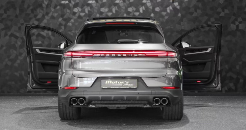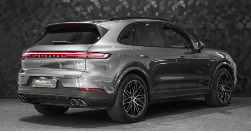 Véhicule d'occasion, sans accident. Catégorie : petites voitures. Numéro de véhicule : 122417. Cylindrée du moteur : 2995 cm³. Première inscription : 11/2024. Climatisation : régulation automatique de la climatisation. Aide au stationnement : Caméra arrière à 360°, caméra avant. Airbags : Airbags frontaux, latéraux et autres. Couleur (fabricant) : QUARTZ GRISÉ. Intérieur : Cuir pleine fleur, noir. Motor's Concept vous propose : PORSCHE CAYENNE S E-HYBRID, 520 ch, 5 portes, 5 places, boîte automatique. Historique d'entretien Porsche complet : révision effectuée le 29 octobre 2024 à 11 000 km. Aucun frais à prévoir. Véhicule garanti 12 mois. Couleur extérieure : Gris Quartz. Couleur intérieure : Cuir noir. ÉQUIPEMENTS : - Pack Sport Chrono - Suspension pneumatique variable - Toit panoramique en verre - Système d'échappement sport PSE - Roues arrière directrices - Porsche Active Suspension Management (PASM) - Radars de stationnement avant/arrière - Caméra 360° avant/arrière/arrière - Régulateur de vitesse adaptatif - Porsche InnoDrive avec assistance active au maintien de voie - Servotronic Plus - Assistance au changement de voie - Reconnaissance des panneaux de signalisation - Avertisseur d'angle mort - Sièges sport à réglage électrique 18 positions avec fonction mémoire - Sièges avant et arrière chauffants - Système audio BOSE - Fermeture assistée des portes - Affichage tête haute - Éclairage d'ambiance - Système Bluetooth - Système de navigation - Apple CarPlay - Porsche Dynamic Light System Plus (PDLS+) - Volant sport multifonction GT en cuir - Volant chauffant - Climatisation automatique 4 zones - Porsche Active Safe - Attelage de remorque rétractable électriquement - Hayon électrique