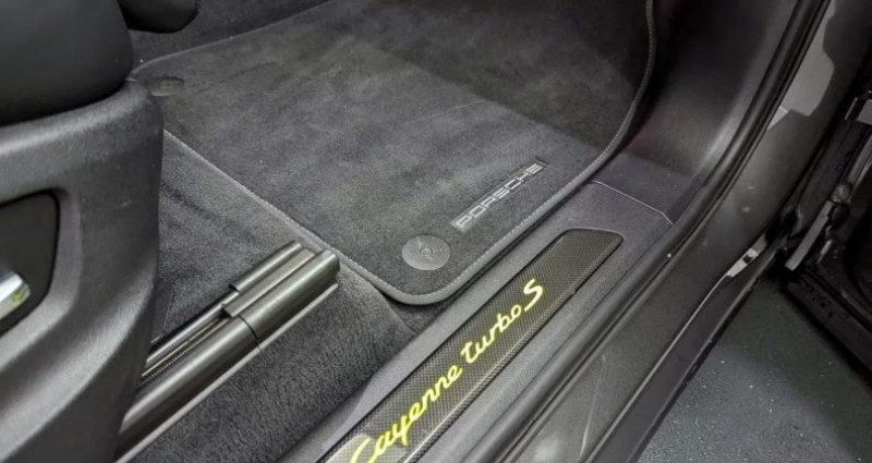 Porsche Cayenne Turbo S E-Hybrid avec des caractéristiques exceptionnelles. Véhicule d'occasion, sans accident et avec un historique d'entretien Porsche complet. La dernière révision a été effectuée à 40 690 km (09/2022). Couleur extérieure : Gris Quartzite métallisé Couleur intérieure : Cuir noir Équipements et Options : - Toit ouvrant panoramique électrique - Système audio Burmester - Phares Matrix LED - Système de freinage en céramique (PCCB) - Sièges sport adaptatifs 18 positions - Pack Sport Chrono - Roues arrière directrices - Climatisation automatique 4 zones - Caméra arrière à 360° - ParkAssist avant et arrière - Régulateur de vitesse adaptatif (Porsche InnoDrive) - Assistant de changement de voie - Affichage tête haute - Jantes alliage Cayenne Sport Classic 22 pouces - Éclairage d'ambiance - Seuils de porte en carbone illuminés - Chargeur embarqué jusqu'à 7,2 kW - Système d'échappement sport - Vitres arrière teintées - Hayon à ouverture et fermeture automatiques - Démarrage sans clé - Volant multifonctions en cuir - GPS (Porsche Communication Management) - Connect Plus (Bluetooth, Apple CarPlay, Wi-Fi) - Système Start/Stop - Badge environnemental : 4 (Vert) - Norme d'émission : Euro6d Informations complémentaires : - Origine : Version allemande - Nombre de propriétaires : 2 - Contrôle technique (HU) : Nouveau