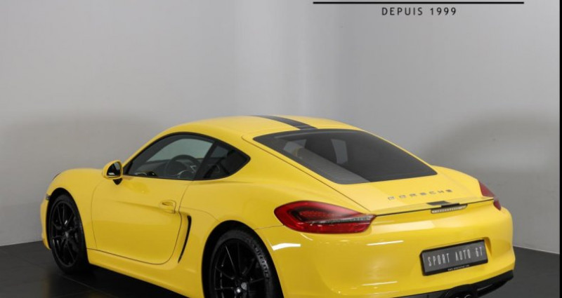 Malus : 0 € Cout Carte Grise (Exemple pour le Dept.67) : 523,76 € Nous avons le plaisir de vous proposer ce magnifique Cayman jaune racing. Avec son bandeau et ses jantes noir mat, ce coupé ne passe pas inaperçu vous en conviendrez. L'intérieur est également typé avec les sièges sport et le volant en aluminium Sport Design. Mais ce qui compte le plus quand on recherche ce type de véhicule c’est la qualité et elle est au rendez-vous ! Entretien 100% Porsche : 31 218 km - 44 605 km - 47 891 km - 50 694 km - 52 034 km - 59 240 km. Si vous vous demandez encore combien de temps il faut attendre avant d’acheter la Porsche de vos rêves, la réponse est : maintenant ou peut-être plus jamais. Pourquoi ? Parce que ces modèles sont de plus en plus difficiles à trouver avec de telles caractéristiques. Alors ne renoncez pas à votre rêve et appelez-nous. - ABS - Accoudoir central - Aide parking - Airbags frontaux + latéraux - Bluetooth - Carnet d’entretien - Climatisation automatique - Direction assistée - ESP - Feux automatiques - GPS tactile - Non fumeur - Ordinateur de bord - Régulateur de vitesse - Sièges chauffants - Sièges sports - Vitres électriques - Véhicule n'ayant jamais été accidenté - Pas d'utilisation sur circuit - Rétroviseurs extérieurs électriques - Finition aluminium - Lave-phares - Jantes alu 20 pouces - PSM (Stability Manager) - PCM (Communication Management) - Volant sport avec palettes - Porsche Dynamic Light System (PDLS) - Sound Package Plus - Système de protection antivol - Boîte séquentielle 7 vitesses * Malgré le soin que nous apportons à la qualité de nos fiches, des erreurs de saisie sont possibles. N’hésitez pas à nous contacter afin que nous validions ensemble les caractéristiques de ce véhicule.¹ Coût indicatif pour le département 67 pouvant varier en fonction des régions.