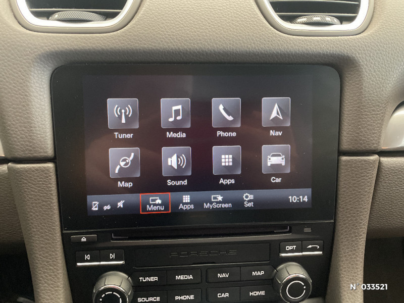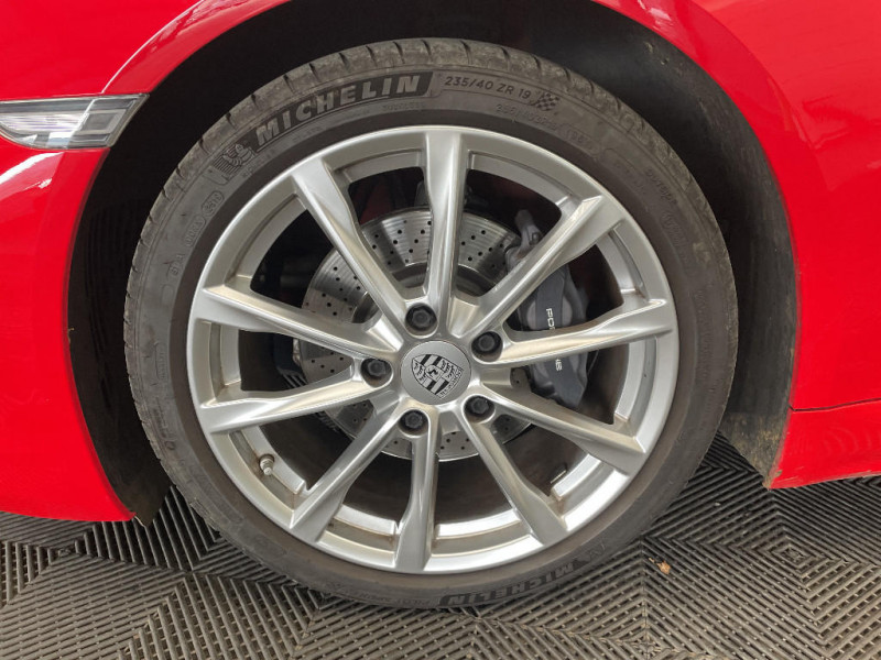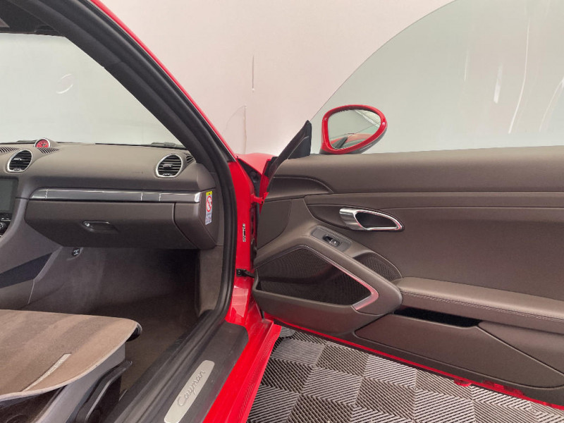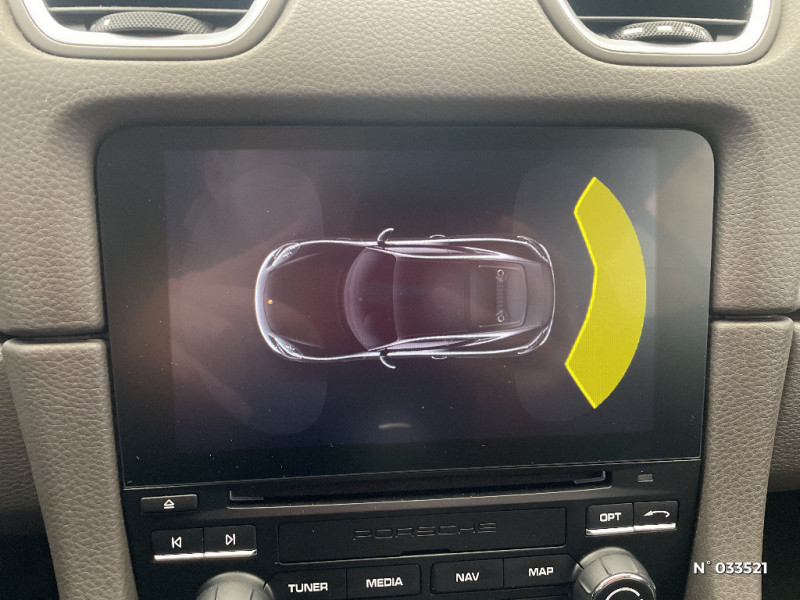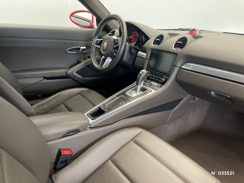 Touche Sport pour activation des réglages dynamiques du moteur et de la transmission / Structure légère intélligente combinant l'aluminium et l'acier / Blocs optiques supplémentaires à DEL dans le bouclier AV avec les feux de positions, clignotants et rappel de clignotant latéraux / Rétroviseurs extérieurs sur panneaux de portes, chauffants, réglables, rabattables électriquement et asphérique côté conducteur / Essuie-glaces de pare-brise avec balais d'essuie-glaces Aéro et buses de lave-glaces / Baguettes de seuil de porte avec inscription du modèle / Crochets porte-vêtement au dos des sièges / Equipements de série 718 Boxster et 718 Cayman Teinte disponible : Noir, Gris Quartz, Beige Louxor En cuir llisse de couleur intérieure : couronne du volant, poignées de porte avec insert, levier de vitesse / sélécteur PDK. En alcantara : bandes centrales des sièges. / Hayon AR à large ouverture avec lunette AR chauffante / Fonds des compteurs du combiné d'instruments (compte-tours compris) en Noir / Sound Package Plus, 8 HP, puissance totale de 150 W avec amplificateur intégré et traitement numérique des signaux / Console centrale montante avec vide-poches ouvert et coffre de rangement fermé / Vide-poches dans les portières / Ciel de toit en tissu / Kit anti-crevaison avec compresseur électrique / Porsche Communication Management (PCM) avec pré-équipement pour téléphone portable et interface audi / Ecrous antivol / Climatisation avec filtre à charbon actif intégré / Vitrage athermique teinté vert / Alarme volumétrique / Système d'alarme avec alarme volumétrique / Aileron AR à déploiement automatique / Propulsion / Porsche Side Impact Protection System (POSIP) comprenant : protection anti-encastrement latérale dans les portes, airbags thorax intégrés dans les bandes extérieures des sièges et airbags de tête intégrés dans les contre-portes pour le conducteur et le passager / Ventilation avec fonction recyclage et dégivrage / 2 porte-gobelets côté passager derrière la baguette décorative du tableau de bord / Combiné d'instruments avec compte-tours central et écran couleur haute définition de 4.6" / Boîte de vitesse Porsche Doppelkupplung (PDK) / Ciel de toit en tissu Noir / Volant Sport diamètre de 375 mm, réglable manuellement en profondeur et en hauteur / Prise 12 Volts dans le plancher côté passager / Dégivrage de lunette AR / Teintes extérieures de série unies : Blanc, Jaune Porsche Racing, Rouge Indien, Noir / Ligne d'échappement à double flux avec sortie centrale en Acier spécial / Essieu à jambes de force allégées à l'AV et à l'AR / Direction directe électromécanique à rapport variable et impulsion / Concept de véhicule 2 places avec moteur central / Signature Porsche sur baguette décorative et désignation du modèle sur le bouclier AR, en Argent (fi nition brillante) / Phares Bi-Xénon avec feux de jour à DEL intégrés / Feux AR à DEL avec feux stop intégrés 4 points et feux de recul / Spots de lecture, éclairage d'orientation et démarreur à DEL ainsi qu'éclairage du coffre et de la b oîte à gants / Sièges Sport avec réglage électrique du dossier et réglage manuel de la profondeur et de la hauteur / Housses des sièges en Alcantara similicuir / Système anti-démarrage avec verrouillage centralisé et télécommande / Affichage numérique: vitesse, rapport engagé, kilométrage total, journalier et heure / Couronne du volant, levier de vitesse et insert de la poignée de porte avec revêtement en Cuir lisse / Coffres AV et AR / Contour des vitres latérales en aluminium (finition brillante) / Assistant d?éclairage automatique avec éclairage d?accompagnement / Lève-vitres électriques à impulsion et abaissement automatique de la vitre / Teintes intérieures de série: Noir, Gris Quartz, Beige Louxor / Fonction "Stop-Start" et croisière / Porsche Stability Management (PSM), ABS inclus avec fonctions de freinage avancées / Freins àétriers fixes monobloc en aluminium à 4 pistons à l?AV et à l'AR, disques de freins de 330 mm de diamètre ventilés et perforés, étriers de frein en Noir
