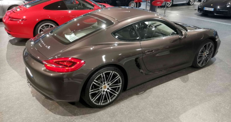 La Société Sport Collection vous propose ce magnifique Cayman en version 981 et 6 cylindres atmosphérique dans une combinaison de couleur absolument splendide et rare ! Ce Cayman est en parfait état, tant sur le plan cosmétique que mécanique. La carrosserie vient d’être lustrée et protégée, les cuirs nettoyés et nourris, ainsi qu’un nettoyage en profondeur des moquettes. Niveau entretien, tout est à jour avec un entretien récent, et le remplacement des pneus arrière. Aucun frais à prévoir avant Février 2027. La liste des options complète est disponible ci-dessous, et elle imposante. On notera surtout le Pack Chrono Sport Plus, le régulateur, les magnifiques jantes de Turbo en 20 pouces, les phares en version PDLS, le volant Sport PDK à palettes, et surtout cet intérieur tout cuir bi-colore absolument somptueux ! 275 chevaux de pure plaisir, une sonorité envoutante grâce aux silencieux Capristo dans un châssis parfait avec son moteur en position centrale arrière. Un bonheur de Porsche. - Caractéristiques : 1ère mise en circulation : 2 Janvier 2015. Pays d'origine : Italie, Code Porsche C07. Kilométrage : 56336. Boite de vitesses : Automatique PDK, à 7 vitesses. Couleur extérieure : Brun Anthracite Métalisé. Couleur intérieure : Bicolore, brun et blanc. Test PIWI : Disponible. Nombre de propriétaires : 3. - Liste des options d'origine : 250 Boite de vitesse à double embrayage type PDK , 7 rapports. 429 Jantes 911 Turbo de 20 Pouces. 454 Régulateur de vitesse. 490 Pack Audio Plus. 534 Système d’alarme volumétrique. 567 Pare-brise teinté dégradé. 573 Climatisation Bi-zone. 583 Pack fumeur (neuf, n’a jamais été utilisé). 603 Phares avec PDLS (Porsche dynamique light system). 636 Assistant parking avant et arrière. 640 Pack Chrono Sport Plus. 658 Servotronic Plus. 810 Tapis de sol. 840 Volant Sport Type PDK à palettes. 980 Intérieur tout cuir. P23 Porsche Communication Management avec module de navigation Europe. Non d’origine : silencieux inox CAPRISTO (sonorité envoutante !). - Liste des entretiens : 27 Décembre 2016, 13 318 kms : Centre Porsche de Vérone (Italie). 6 Février 2019, 28 130 kms : Centre Porsche de Vicenza (Italie). 4 Février 2021, 31 612 kms : Centre Porsche de Vicenza (Italie). 7 Février 2023, 49566 kms : Centre Porsche de Clermont Ferrand. 13 Février 2023, 54 106 kms : Racing Legends, Spécialiste Porsche. - Informations supplémentaires : Carnet d'entretien : Présent. Manuel, documents : Présents. Double des clés : Présent. Dossier factures : Toutes les factures depuis l'origine. Outillage : Présent, complet et d'origine. Test Piwi : Disponible. Magnifique Cayman 2L7 275cv atmosphérique dans une superbe configuration ! Parfait état, entretien rigoureux ! A saisir ! Tarif : 55 900 €. Les photos en haute définition sont disponibles sur simple demande, et je me tiens à votre disposition pour toute question ou complément d'information.