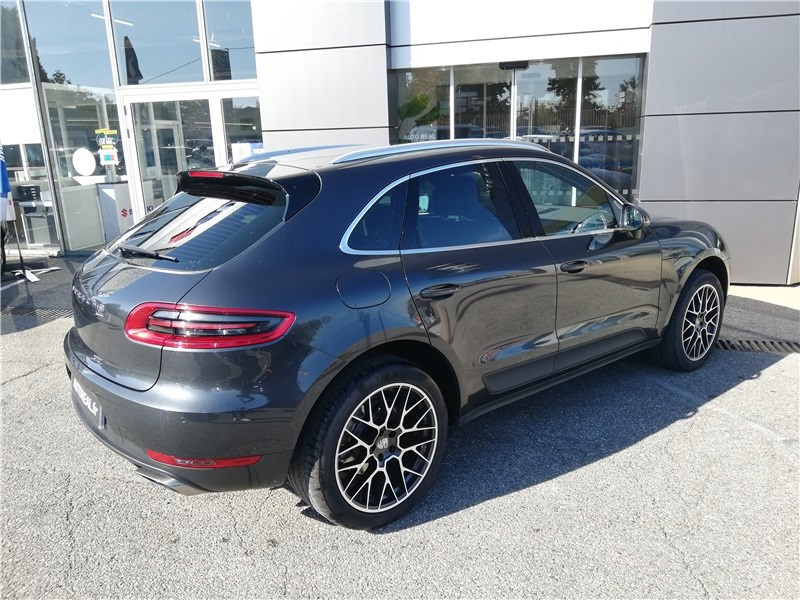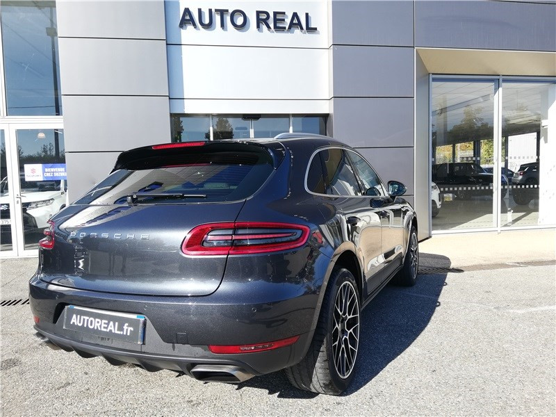2 porte-gobelets intégrés à diamètre variable à l'AV / 2 ports de charge USB dans la console centrale AR / 2 sorties d'echappement simples Argent mat, sur les côtés droit et gauche / 3ème feu stop (DEL) intégré au becquet de toit / 3 instruments intégrés au combiné d'instruments / 3 prises (12V) : devant la console centrale, dans le vide-poches de la console centrale et dans le / 4 prises de courant 12V / 5 sièges, banquette AR composée de 2 sièges latéarux confortables et d'un siège central / Accoudoir central AR avec 2 porte-gobelets intégrés / Accoudoir de la console centrale AV rabattable et coulissant / Alarme antivol / Alarme volumétrique à ultrasons / Antenne intégrée / Anti-démarrage par transpondeur / Appuis-tête AV 4 positions / Assistance à la descente (Porshe Hill Control, PHC) / Assistant d'éclairage automatique / "ATTENTION" - Equipements en cours de saisie / Baguette décoratives couleur Argent / Baguette de protection du coffre en Aluminium / Baguettes de vitres latérales Aluminium / Banquette AR avec sièges AR rabattables séparément (40/20/40) et accoudoir central rabattable / Becquet de toit peint en Noir (finition brillante) / Blocs optiques AV avec feux de position et clignotants à diodes / Boîte à double embrayage Porsche Doppelkupplung (PDK) à 7 rapports / Boîte à double embrayage Porsche Doppelkupplung (PDK) à 7 rapports / Bouclier AV avec prises d'air de refroidissement intégrées / Capteur de retournement pour déclenchement des airbags rideaux et des prétensionneurs / Carrosserie galvanisée autoporteuse / Ceintures de sécurité automatiques 3 points / Chassis à suspension à ressorts en acier / Ciel de toi en tissu / Climatisation automatique avec réglage individuel de la température pour le conducteur et le passage / Combiné d'instruments avec écran couleur 4,8", affichage du rapport pour PDK, affichage des interval / Contrôle de l'usure des plaquettes de frein / Couvre-bagages rigide, amovible / Crochets porte-vêtements sur le montant latéral côtés conducteur et passager / Dégivrage de la lunette AR avec arrêt automatique / Disques à ventilation interne d'un diamètre de 345 à l'AV et 330 à l'AR, étriers de frein Noir / Eclairage de l'habitacle : boîte à gants, serrure de contact, spots de lecture côté conducteur/passa / Entourage des vitres latérales en Noir mat / Equipements de série Macan S et Macan D Diesel dans la teinte de série, similicuir/Alcantara / Equipements intérieur dans la teinte de série / Espace de rangement dans l'habitacle / Essuie-glace AR avec commande de balayage intermittent et buse de lavage / Essuie-glace AV à 2 vitesses avec commande de balayage intermittent, capteur de pluie et buses de / Etriers de freins Argent / Feux AR à DEL avec feux stop adaptatifs / Filtre à particules/pollen avec filtre à charbon actif / Fonction Auto-Hold / Fonction de désactivation de l'airbags passager / Fonction Stop Start / Frein multicollision / Freins àétriers fixes monobloc en aluminium à 4 pistons à l'AV / Freins àétriers flottants à l'AR / Instruments ronds avec compte-tours couleur Noir / Interface audio universelle / Intérieur de série en teinte de série, cuir synthétique/Alcantara / Kit anti-crevaison avec compresseur électrique / Lève-vitres électriques AV et AR, avec fonction de fermeture confort, sécurité anti-pincement et fon / Lubrification intégrée à carter humide / Mode croisière / Module de gestion thermique / Pack Intérieur Noir / Pare-chocs constitué de bras transversaux rigides et de 2 éléments de déformation dotés chacun d'un / Phares antibrouillard intégrés au bouclier AV / Phares principaux halogènes à technologie de projection avec réglage automatique et statique de la p / Porsche Communication Management (PCM) avec pré-équipement pour téléphone portable et interface audi / Porsche Traction Management (PTM) / Porte-bouteille dans les garnitures de portes AV et AR / Portes avec protection anti-encastrement latérale / Pré-équipement pour dispositif d'attelage / Pré-équipement téléphone portable pour la connexion du téléphone portable (Handsfree) / Prétensionneurs de ceinture, limiteurs d'effort, points de renvoi des ceintures réglables manuelleme / Protection anti-encastrement latérale dans les portières / PSM (Porsche Stability Management) avec ABS, ASR, ABD, MSR et stabilisation d'attelage / Range-bouteille dans les contre-portes AV et AR / Régulateur de vitesse avec limitation de vitesse / Réservoir de 65L / Sideblades, Noir Lave / Sièges Confort AV électrique 8 réglages / Sièges Confort AV électrique 8 réglages / Signature "PORSCHE" et désignation du modèle sur le hayon AR, aspect Chromé / Sound Package Plus, 10 HP, puissance totale de 150W avec amplificateur intégré et traitement / Système de récupération de freinage / Système ISOFIX / Teintes extérieures unies : Noir, Blanc / Teintes intérieures de série : Noir, Gris Quartz, Beige Louxor / Touche OFFROAD (tout-terrain) / Touche Sport / Turbocompresseur / VarioCam / Verrouillage SAFE / Vitrage athermique teinté / Vitrage thermo-isolant teinté, avec bande grise dégradée sur le pare-brise / Volant multifonctions avec palette, couronne de volant en Cuir lisse / Volet actif de radiateur / Volume de coffre : env 500 litres, avec sièges AR rabattus : volume de chargement max de 1500 litres
