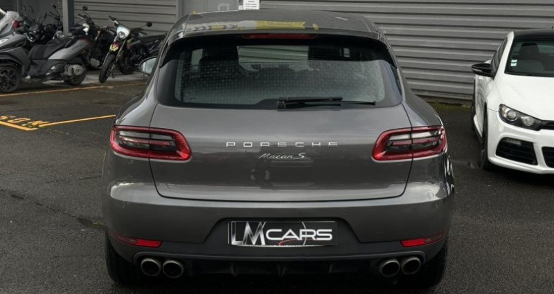 ======= OPTIONS ======= Assistance parking avant et arrière avec caméra de recul et vue 360° Peinture métallisée ======= EQUIPEMENTS DE SERIE ======= 4 portes avec protection anti-encastrement latérale 5 places, banquette arrière avec 2 sièges latéraux confortables et une place centrale Accoudoir arrière central avec 2 porte-gobelets intégrés Airbags grand volume pour le conducteur et le passager Airbags latéraux avant intégrés aux sièges Airbags rideaux Allumage automatique des feux en cas d'ouverture fermeture du véhicule Avertisseur de changement de voie Avertisseur sonore à 2 tonalités avec avertisseur sonore simple supplémentaire pour système d'alarme Banquette arrière fractionnable (40 20 40), accoudoir central rabattable Boîte Porsche Doppelkupplung (PDK) à 7 rapports, avec modes manuel en utilisant les palettes au volant ou mode automatique, affichage du passage optimal à la vitesse supérieure pour la consommation d'essence Bouton tout-terrain Capacité du réservoir : 60 litres Ciel de toit en tissu Climatisation automatique avec réglage séparé côtés conducteur et passager, contrôle automatique du recyclage de l'air, touche AC-MAX et capteur d'humidité Concept d'éclairage de l'habitacle : Boite à gants, emplacement de la clef de contact, plafonniers avant et arrière, coffre. Contrôle de pression des pneus ( TPMS ) Controle en descente (Porsche Hill Control PHC) Deux sorties d'échappement doubles couleur Argent mat Direction assistée Ecran TFT couleur haute définition 4,8 pouces, affichage des rapports de la PDK, des intervalles de révision, de la température extérieure et des différents témoins d'alarme Fermeture centralisée des portes à télécommande Feux arrière à DEL avec feux stop adaptatifs Feux avant avec feux de position et clignotants à DEL Fonction antirecul Frein de parking électrique Hayon automatique Jantes Macan S 18 pouces Kit de réparation pneumatique avec compresseur électrique Lève-vitres électriques avant et arrière, avec fonctions confort, anti-pincement, et abaissement séquentiel Lunette arrière dégivrante Ordinateur de bord Pack intérieur noir, finition brillante Porsche Car Connect (PCC) avec Porsche Vehicule Tracking System Plus (PVTS Plus) Porsche Traction Management (PTM) : transmission intégrale dynamique avec différentiel central multidisque électronique, différentiel de freinage automatique (ABD), système de régulation antipatinage (ASR) Régulateur de vitesse Rétroviseurs extérieurs chauffants, réglables et repliables électriquement (peut être fait à partir de la clef), de forme asphérique côté conducteur Siège conducteur réglable éléctriquement dans 8 directions, siège avant passager réglage manuellement dans 6 directions Sièges confort Sièges en simili cuir alcantara Système Rollover (détection de tonneaux) : déclenche les airbags rideaux et les prétensionneurs de ceinture Système antidémarrage, système antivol avec surveillance de l'habitacle par ultrasons Système de stabilisation Porsche Stability Management (PSM) avec ABS, régulation du couple moteur (MSR), système antipatinage (ASR), différentiel de freinage automatique (ABD), assistance au freinage, Système ISOFIX de fixation de sièges enfant sur le siège passager et les sièges arrière latéraux Touche SPORT Vitres teintées à isolation thermique avec pare-brise teinté dégradé gris Volant Multifonction avec palettes de passage des rapports Nb. Vitesses : 7 Conso Mixte : l/100