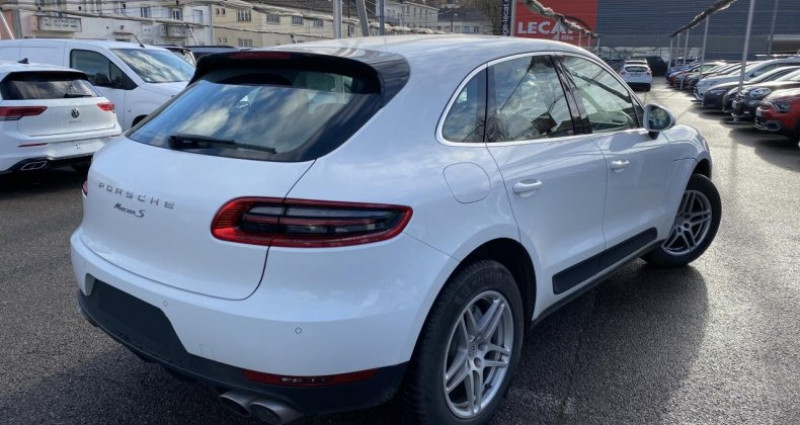 ======= OPTIONS ======= Caméra de recul incluant l'assistance parking avant et arrière Capacité du réservoir 75 litres Suspension pneumatique à hauteur variable avec régulation de la hauteur de caisse et de l'assiette incluant le PASM ======= EQUIPEMENTS DE SERIE ======= 3 instruments ronds intégrés dans le cockpit Allumage automatique des feux en cas d'ouverture fermeture du véhicule Banquette arrière fractionnable (40 20 40), accoudoir central rabattable Climatisation automatique Ecran TFT couleur haute définition 4,8 pouces, affichage des rapports de la PDK, des intervalles de révision, de la température extérieure et des différents témoins d'alarme Feux antibrouillard, intégrés au bouclier avant Frein de parking électrique Hayon automatique Jantes Macan S 18 pouces Régulateur de vitesse Sidesblades peints en noir Lave Siège conducteur réglable éléctriquement dans 8 directions, siège avant passager réglage manuellement dans 6 directions Sièges en simili cuir alcantara Système ISOFIX de fixation de sièges enfant sur le siège passager et les sièges arrière latéraux Volant Multifonction avec palettes de passage des rapports Nb. Vitesses : 7 Conso Mixte : l/100