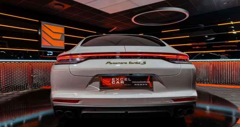 Boite de Vitesse : PDK 8 Crédit Possible : Oui Garantie : 12 à 60 Mois Options : Equipement de série + 0NC Désignation du modèle peint en Noir (finition brillante) - 43S Jantes SportDesign 21 pouces peintes en Noir - Q2J Sièges confort à l'avant (14 positions,électriques) avec pack mémoire - 4D5 Fonction massage avant incluant la ventilation des sièges avant - 6FH Rétroviseurs extérieurs peints en Noir (finition brillante) - QJ4 Contour des vitres latérales en Noir (finition brillante) - VK4 Sorties d’air peintes en Noir (finition brillante) - 3FU Toit ouvrant panoramique - G1G Boîte de vitesses Porsche Doppelkupplung (PDK) 8 rapports - 0P9 Système d'échappement sport avec sorties d'échappement sport en noir - 8JU Phares matriciels à LED teintés avec Porsche Dynamic Light System Plus PDLS +) - 8VQ Feux arrière Exclusive Design - KQ2 Lettering PORSCHE peint en Noir (finition brillante) - 4KF Vitrage arrière fumé - 5TL Pack intérieur peint en Noir (finition brillante) - QE1 Pack rangement - 2ZH Volant Sport chauffant - 4X4 Airbags latéraux à l'arrière - VT9 Baguettes de seuil de porte en aluminium brossé en Noir, illuminées - 9R1 Assistance à la vision nocturne - 7Y1 Assistance au changement de voie - 8A4 Assistance parking avant et arrière avec caméra de recul et vue 360° - 8T3 Régulateur de vitesse adaptatif - GZ2 Fermeture assistée des portières Soft Close - 2V4 Ionisateur - QQ2 Éclairage d'ambiance avec éclairage intérieur du compartiment arrière - 9AH Climatisation 4 zones - 9JB Pack fumeur - 9VJ Burmester® High-End Surround Sound System - UI2 Interface USB-C à l'arrière Historique : Cette Panamera Turbo S a été entretenue le 28/08/2024 à 10 110km. Véhicule hybride équipé d'une batterie. Référence : 971 915 099 G / Prix : 12 000,78 € HT