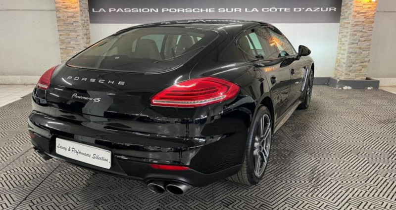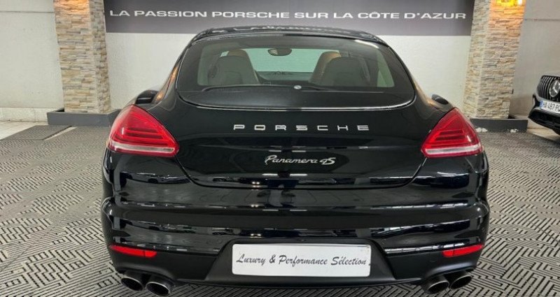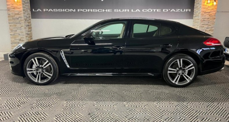 ======= OPTIONS ======= Assistance angles morts Assistance parking avant et arrière avec caméra de recul Intérieur tout cuir bicolore Jantes « Panamera Sport » 20 pouces Pack intérieur en cuir Pack intérieur en cuir en couleur contrastante Pack Sport Chrono Plus Peinture métallisée Phares avant à DEL à fond noir avec fonction Porsche Dynamic Light System (PDLS) Sièges chauffants à l'avant et à l'arrière Suspension pneumatique adaptative avec correcteur d'assiette et régulation de la hauteur de caisse Système d'échappement Sport Toit coulissant relevable électrique en verre Ventilation des sièges avant ======= EQUIPEMENTS DE SERIE ======= 1 porte-gobelet intégré à l'accoudoir central à l'avant 2 porte-gobelets intégrés de diamètre variable à l'arrière 2 sorties d'échappement doubles, extérieures (droite et gauche), en acier spécial brossé 4 portes avec protection anti-encastrement latérale intégrée 4 prises (12 V) réparties dans les consoles centrales avant et arrière, la boîte à gants et le coffre 4 sièges, console centrale avant et arrière traversante avec accoudoir rabattable à l'arrière 5 instruments ronds à entourage de couleur Argent, fonds de compteurs noirs, compte-tour à fond Gris Argent Accélérateur électronique Accoudoir de console centrale à l'avant avec rangement intégré Aileron arrière télescopique adaptatif (2 positions) Airbag genoux côté conducteur et passager Airbag rideaux couvrant intégralement le cadre de pavillon ainsi que les vitres latérales (côtés gauche et droit) Airbags grand volume pour le conducteur et le passager Airbags latéraux à double chambre intégrés dans les sièges avant, à réglage différencié pour les zones du bassin et du thorax Antennes intégrées permettant la réception de la radio, de la navigation, du téléphone et de la TV (selon les équipements, fonction RDS Diversity uniquement pour le PCM) Antiblocage (ABS intégré au PSM) Appuie-tête intégrés à l'avant et à l'arrière Assistance au démarrage Assistance au freinage Assistance parking à l'arrière, avec signal sonore Aumônières au dos des sièges avant Avertisseur sonore à deux tonalités, avertisseur sonore simple supplémentaire pour le système d'alarme Baguette décorative chromée sur le hayon Baguettes de seuil de porte en aluminium brossé, avec monogramme du modèle à l'avant Baguettes décoratives, couleur Argent Blocs optiques du bouclier avant avec feux de position à DEL et clignotants Boîte Porsche Doppelkupplung (PDK) à 7 rapports, avec modes manuel et automatique, affichage du passage optimal à la vitesse supérieure Bouclier avant avec entrées d'air Boucliers avant et arrière peints dans la couleur de la carrosserie Capacité de batterie : 95 Ah Capot moteur, portes et ailes avant en aluminium Capteur de retournement Carénage de soubassement Carrosserie de conception hybride allégée, entièrement galvanisée (association acier spécial et aluminium) Ceintures de sécurité automatiques à 3 points avec prétensionneur de ceinture (à l'avant et à l'arrière), et limiteur d'effort de ceinture (à l'avant) Châssis à suspension sur ressorts hélicoïdaux Climatisation automatique avec réglage de la température séparé côtés conducteur et passager, commande automatique du recyclage de l'air avec capteur de qualité d'air et fonction chaleur résiduelle Combiné d'instruments avec écran TFT couleur haute définition de 4,8 pouces, affichage des intervalles de révision, affichage de la température extérieure et divers témoins, dont le rapport de boîte (en association avec la boîte PDK), Compensation hydraulique du jeu des soupapes Console de pavillon avec éclairage d'ambiance,spot de lecture à diodes et, le cas échéant, témoin lumineux de désactivation de l'airbag passager, commandes de l'Assistance Parking, commande du toit coulissant relevable électrique et com Contrôle de pression des pneus ( TPMS ) Coupure d'injection variable en décélération Couvre-bagages souple Dégivrage de lunette arrière avec arrêt automatique Deux places arrière avec accoudoir central rabattable et dossiers rabattables de manière fractionnée (40% 20% 40%) permettant un plancher de coffre plat Différentiel automatique de freinage (ABD) Diffuseur arrière noir, lisse grainé Direction assistée à démiltiplication variable Dispositif de contrôle d'usure des plaquettes de frein Distribution statique haute tension avec bobines d'allumage individuelles Doubles lamelles dans les entrées d'air latérales du bouclier avant, couleur Noir Eclairage d'accompagnement programmable (feux de jour) Eclairage d'ambiance à l'avant et à l'arrière Eclairage de la boîte à gants Eclairage des cendriers Eclairage des poignées de porte Eclairage des vide-poche des portes avant Eclairage des zones d'accès à l'avant et à l'arrière Eclairage du coffre à bagages et du compartiment moteur Eclairage du compartiment de rangement de la console centrale Eclairage du démarreur Eclairage du plancher à l'avant Encadrement des vitres latérales chromé Essieu arrière multibras en aluminium Essieu avant à double triangulation en aluminium Essuie-glace avant à 2 vitesses de balayage et intermittence variable, capteur de pluie, et buses de lave-glace chauffantes Etriers couleur Argent Feu de recul Feux arrière à DEL avec feu antibrouillard et feux stop adaptatifs Feux de jour composés de 4 DEL par phare principal Filets de rangement dans les parois latérales du coffre et aux pieds du passager avant Filtres à particules et à pollen avec filtre à charbon actif Fonction Start Stop Frein de parking électrique Gestion électronique du moteur EMS SDI 10 Habillage du coffre en velours Hayon arrière en aluminium Hayon automatique Injection d'air secondaire Jantes Panamera S 8 J x 18 en alliage léger avec pneumatiques 245 50 ZR 18 à l'avant Jantes Panamera S 9 J x 18 en alliage léger avec pneumatiques 