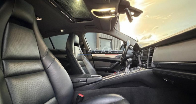 ======= OPTIONS ======= Assistance parking avant et arrière avec caméra de recul BOSE Surround Sound- system Essuie glace arrière Pack SportDesign Sièges chauffants à l'avant et à l'arrière Système de contrôle de la pression des pneu (TPM) ======= EQUIPEMENTS DE SERIE ======= 1 porte-gobelet intégré à l'accoudoir central à l'avant 2 porte-gobelets intégrés de diamètre variable à l'arrière 2 sorties d'échappement simples, couleur Argent mat 4 portes avec protection anti-encastrement latérale intégrée 4 prises (12 V) réparties dans les consoles centrales avant et arrière, la boîte à gants et le coffre 4 sièges, console centrale avant et arrière traversante avec accoudoir rabattable à l'arrière 5 instruments ronds cerclés de couleur aluminium , fonds de compteur en Noir, fond du compte-tours Gris Argent Accélérateur électronique Accoudoir de console centrale à l'avant avec rangement intégré Aileron télescopique adaptatif (2 positions) Airbag genoux côté conducteur et passager Airbags grand volume pour le conducteur et le passager Airbags latéraux à double chambre intégrés dans les sièges avant, à réglage différencié pour les zones du bassin et du thorax Airbags rideaux couvrant l'intégralité du pavillon et les vitres latérales, des montants de pare-brise aux montants de custode (à gauche et à droite) Antennes intégrées pour la radio, la navigation, le téléphone et la TV (selon l'équipement audio choisi : Phase-Diversity pour le système audio CDR-31 et Scan-Diversity pour le PCM) Appuie-tête intégrés à l'avant et à l'arrière Assistance automatique à l'utilisation des feux de croisement Assistance de fermeture électrique pour le hayon arrière Assistance parking à l'arrière, avec signal sonore Aumônières au dos des sièges avant Avertisseur sonore à deux tonalités, avertisseur sonore simple supplémentaire pour le système d'alarme Baguette décorative chromée sur le hayon Baguettes de parement, couleur aluminium Baguettes de seuil de porte en aluminium brossé, avec monogramme du modèle à l'avant Bloc moteur en fonte grise Blocs optiques du bouclier avant avec feux de position à diodes et clignotants Bouclier avant avec entrées d'air intégrées Capacité de batterie : 95 Ah Capot avant actif Capot moteur, portes et ailes avant en aluminium Capteur de retournement Carénage de soubassement Carrosserie de conception hybride allégée, entièrement galvanisée (association acier spécial et aluminium) Ceintures de sécurité automatiques à 3 points avec prétensionneur de ceinture (à l'avant et à l'arrière), et limiteur d'effort de ceinture (à l'avant) Châssis à ressorts hélicoïdaux Climatisation automatique avec réglage de la température séparé côtés conducteur et passager, commande automatique du recyclage de l'air avec capteur de qualité d'air et fonction chaleur résiduelle Combiné d'instruments avec écran TFT couleur haute définition de 4,8 pouces, affichage des intervalles de révision, affichage de la température extérieure et divers témoins, éclairage blanc Compensation hydraulique du jeu des soupapes Concept d'éclairage de l'habitacle Condamnation centralisée avec télécommande Console de pavillon avec éclairage d'ambiance,spot de lecture à diodes et, le cas échéant, témoin lumineux de désactivation de l'airbag passager, commandes de l'Assistance Parking, commande du toit coulissant relevable électrique et com Couvre-bagages souple enroulable Culasse en aluminium Dégivrage de lunette arrière avec fonction d'arrêt automatique Diamètre des disques de frein monobloc 360 mm à l'avant, 330 mm à l'arrière Diffuseur arrière noir, lisse Dispositif de contrôle de l'usure des freins sur chaque plaquette Eclairage d'accompagnement programmable (feux de jour) Encadrement des vitres latérales noir mat Entrées d'air latérales du bouclier avant à lamelles doubles, en Noir Essieu à double triangulation aluminium à l'avant Essieu multibras aluminium à l'arrière Essuie-glace avant à 2 vitesses de balayage et intermittence variable, avec capteur de pluie Etriers de frein noirs Étriers fixes monobloc en aluminium à 4 pistons à l arrière, disques de frein ventilés et rainurés Etriers fixes monobloc en aluminium à 6 pistons à l'avant, disques de frein ventilés et rainurés Feux arrière à diodes avec feux antibrouillard et feux stop adaptatifs Feux de jour à diodes horizontaux situés dans les blocs optiques du bouclier avant Feux de recul Filets de rangement dans les parois latérales du coffre et aux pieds du passager avant Filtre à particules Filtres à particules et à pollen avec filtre à charbon actif Fonction Start Stop Frein de parking électrique Habillage du coffre en velours Hayon arrière en aluminium Injecteurs à commande piézoélectrique Injection directe par rampe de gazole Jantes Panamera 8 J x 18 en alliage léger avec pneumatiques 245 50 ZR 18 à l'avant Jantes Panamera 9 J x 18 en alliage léger avec pneumatiques 275 45 ZR 18 à l'arrière Kit de réparation pneumatique avec compresseur électrique Lève-vitres électriques à l'avant et à l'arrière, avec fonction fermeture confort, sécurité anti-pincement et fonctionnement séquentiel Levier de vitesse en cuir lisse (teinte intérieure) Lubrification à carter humide Module de gestion électronique EDC 17 CP 44 Monogramme diesel sur les ailes avant Ordinateur de bord Ouverture fermeture des portes sans position d'arrêt Passages de roue profilés à l'avant et à l'arrière Peinture unies Noir Poignées et accoudoir des portes ainsi que la partie supérieure de l'accoudoir de console centrale en cuir estampé Projecteurs halogènes H7 avec réglage statique automatique de la portée Protection anti-encastrement latérale intégrée dans les portes Rangement avec trousse de secours et triangle de signalisation Rangement sous le plancher du coffre Rangements de l'habitacle Récupération d'é
