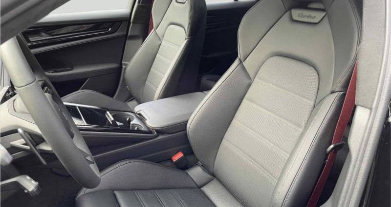 Cylindrée : 3996 cm3 Nb. Vitesse : 8 - Accès confort - Accoudoir central - Adaptive Air Suspension including Porsche Active Suspension Management (PASM) - Affichage tête haute - Airbags - Airbags latéraux dans le compartiment AR - Appuis-tête - Assistance active à la limitation de vitesse - Assistance active au stationnement avec caméra 3D - Assistance au changement de voie - Assistance au maintien dans la voie - Assistance au stationnement autoguidé - Assistance parking avant et arrière avec caméra de recul et vue 360° - Avertisseur et assistance au freinage avec détection des piétons - Baguettes de seuil de porte en Aluminium brossé Noir - Bandeau lumineux tridimensionnel - Batterie de démarrage - Boîte de vitesse Porsche Doppelkupplung (PDK) à 8 rapports - BOSE Surround Sound-System - Bouchon de réservoir Exclusive Design en Turbonite - Boulons de roue antivol - Burmester High-End Surround Sound System - Câble de chargement de 6m (mode 3) - Cache-rouleau flexible pour le compartiment à bagages - Ceintures de sécurité Rouge Bordeaux - Ceintures de sécurité Turbonite - Chargeur CA embarqué avec une puissance de charge allant jusqu'à 11 kW - Ciel de toit, garniture des montants A/B/C et pare-soleil en Race-Tex Noir - Climatisation 2 zones avec pré-climatisation au stationnement - Compartiment pour smartphone avec chargement par induction jusqu'à 15W - Contour des vitres latérales en Noir (finition brillante) - Contour des vitres latérales en Turbonite - Désignation du modèle peinte en Noir (finition brillante) - Détection des piétons - Ecusson Porsche sur les appuie-tête - Equipements turbo - Etriers de frein en Vert Acide - Fermeture assistée des portières - Soft Close - Filtre à pollen/particules avec filtre à charbon actif - Hayon automatique - Jantes Panamera Turbo S 21 avec verrouillage central - Jantes peintes en Noir (finition brillante) - Jantes peintes en Turbonite - Jupes latérales - Kit anticrevaison - Lettering PORSCHE peint en Noir (finition satinée) - Levier de changement de vitesse PDK - Limousine - Pack d'accentuation Noir - Pack d'accentuation Turbonite - Pack extérieur Noir (finition brillante) - Pack Intérieur Carbone (finition satinée) - Pack intérieur carbone (finition satinée) avec accentuation de couleur en Rouge Carmin - Pack mémoire pour le conducteur et le passager - Pack Non-Fumeur - Pack Sport Chrono - Pare-soleil pour le conducteur et le passager AV - Partie inférieure des rétroviseurs peinte en couleur extérieure et base peinte en Noir (finition brillante) - Pédalier et repose-pieds en Noir - Phares HD Matrix LED - Phares HD Matrix LED teintés - Pneumatiques été 20 - Poignées de portes peintes en couleur extérieure - Porsche Connect - Porsche InnoDrive avec guidage actif - Préparation pour éthylotest antidémarrage - Préparation pour le système de divertissement pour places AR Porsche - Quatre roues motrices - Radio numérique - Reconnaissance des panneaux de signalisation - Réservoir de 80 litres - Rétroviseurs extérieurs anti-éblouissement - Roues AR directrices - Servotronic Plus - Sièges 4+1 - Sièges AR chauffants - Sièges AR individuels - Sièges Confort AV (électrique 14 positions) avec Pack Mémoire - Sièges ventilés AV - Smartphone integration - Suppression de la désignation du modèle AR - Suppression des stickers latéraux - Système d'avertissement de ceintures de sécurité pour le conducteur et le passager AV et système de siège AR - Système d'échappement sport avec sorties d'échappement sport en Bronze Foncé - Système de surveillance de la pression des pneus (TPM) - Systèmes d'appel d'urgence eCall et bCall - Tapis de sol AV/AR - Toit en aluminium - Toit ouvrant panoramique - Triangle de signalisation - Valve TPM en Noir - Vitrage insonorisant et thermo-isolant - Vitrage insonorisant et thermo-isolant avec vitrage AR fumé - Volant chauffant - Volant Sport GT chauffant avec commutateur de mode