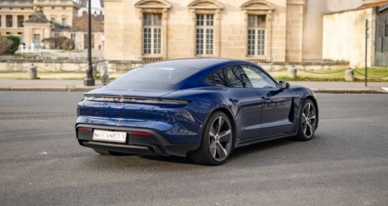 Porsche TAYCAN (9J1) Turbo S *Condition neuve, première main*, (Berline), BLEU, 10cv, 4 portes, mise en circulation le 01-06-2020. 4 places, couleur intérieur : NOIR, longueur : 4,96 mètres, boîte de vitesse : automatique OPTIONS ET EQUIPEMENTS : Kilométrage garanti. Le Porsche Taycan Turbo S que nous vous présentons aujourd'hui fût livré par le Centre Porsche d'Antibes le 29 mai 2020 et immatriculé directement dans la principauté de Monaco. La voiture possède une magnifique configuration avec une teinte Bleu Gentiane métallisé et un intérieur en cuir Club Noir Basalte. Au-delà de sa configuration ce Taycan est particulièrement optionné. Vous retrouvez - entre autres - le système son Burmester®, le pack décoratif couleur Neodyme, le toit panoramique, le régulateur de vitesse adaptatif, l'assistance parking avant et arrière avec caméra de recul et vue 360°, les sièges sport adaptatifs avec fonction mémoire et les seuils de portes en carbone illuminés. Il dispose également de tous les appendices en carbone à l'extérieur avec les jantes, la lame du pare-choc avant, le diffuseur arrière ainsi que les jupes latérales. La liste complète des options est disponible ci-dessous. Ce Taycan affiche seulement 9.000 kilomètres à son compteur, parcourus avec son seul et unique propriétaire. Il a été suivi exclusivement en concession Porsche, le dernier entretien en date a été effectué en avril 2024. Ce monstre de puissance vous attend, il vous offrira l'expérience de conduite d'une Porsche et les agréments d'une voiture électrique avec tout le confort nécessaire et plus de puissance que de raison ! Equipement optionnel : 9VJ - Burmester® high-end surround sound system : haut-parleurs haute fidélité burmester, caisson de basse, son surround 1P7 - Porsche dynamic chassis control sport (pdcc sport) : suspension active : sélection conducteur, barre stabilisatrice ajustable et électronique, différentiel actif arrière, répartiteur de couple, contrôle de freinage en courbe P4S - Porsche innodrive avec régulateur de vitesse adaptatif : fonction start/stop, système détection de collision, feux stop actifs, inclut le freinage automatique, freine à vitesse réduite, détection de piéton, alerte sonore, régulateur vitesse intelligent, conduite autonome (autonomie partielle) HA - Intérieur tout cuir club noir basalte : cuir premium VW6 - Vitrage insonorisant et thermo-isolant avec vitrage arrière fumé 3FG - Toit panoramique fixe KA6 - Assistance parking avant et arrière avec caméra de recul et vue 360°: alerte av véhicule en approche par le côté, assistant sortie de stationnement arrière 7M8 - Baguettes de seuil de porte en carbone illuminées 1NU - Jantes peintes en platine (finition satinée) 4F2 - Accès confort : smart card / smart key automatique gérant : entrée sans clé et mémoire de réglages des sièges KH5 - Advanced climate control (climatisation 4-zones) 79J - Assistant changement de voie : capteur d'angle mort QV3 - Radio digitale QQ1 - Eclairage d'ambiance 4X4 - Airbags latéraux à l'arrière : 10 airbags 76H - Câble de recharge type 2 (mode 3) 6XV - Rétroviseurs extérieurs rabattables électriquement avec éclairage d'alentour 2PJ - Volant chauffant QE1 - Pack rangement 1G8 - Kit anticrevaison GT1 - Pack intérieur additionnel en néodyme Q1J - Sièges sport adaptatifs à l'avant (18 positions, électriques) avec pack mémoire Liste des entretiens : 26/[Coordonnées masquées] km - Porsche Monaco O8/[Coordonnées masquées] km - Porsche Monaco Le véhicule est couvert par un contrat de garantie Triomphe Essentielle 6 mois avec plafond de 10 000€. Extension de durée (12 ou 24 mois) et/ou de plafond (20 000€) possible. L'auto est visible à Paris ou sur le site de Mecanicus pour plus de photos. Nos prix s'entendent TVA et malus inclus, le coût de la carte grise reste à la charge de l'acheteur. Reprise et financement possibles. L'équipe MECANICUS Référence annonce : 32