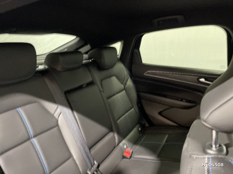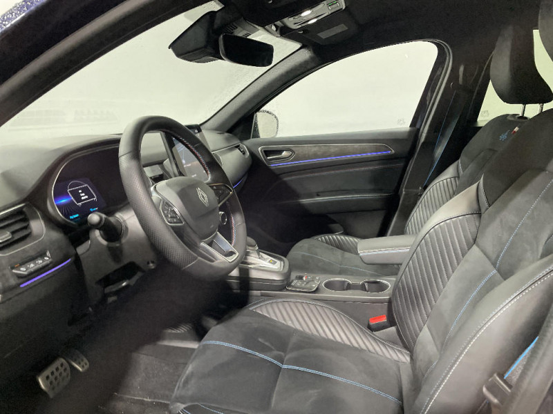 Bouton d'appel d'urgence R-Call / Carte Renault avec accès et démarrage mains libres avec fermeture à l'éloignement / Centrage dans la voie / Ciel de toit noir / Commutation automatique des feux de route/croisement / Console centrale avec levier de vitesse e-shifter / Alerte de distance de sécurité / Alerte détection de fatigue / Allumage automatique des phares et des essuis-glace avec capteur de pluie et de luminosité / Avertisseur de sortie de stationnement / Banquette AR avec accoudoir central / Volant textile enduit grainé perforé chauffant / Coques de rétroviseurs extérieures noires / Design esprit Alpine extérieur / Design esprit Alpine intérieur / Détection intelligente des limitations de vitesse et prévention survitesse / Double canule d'échappement noir brillant / Eclairage d'ambiance / Feux de jour à LED avec signature lumineuse C-Shape / Frein de parking électrique avec fonction Auto-Hold / Freinage actif d'urgence avec détection piétons et cyclistes / Harmonie intérieure foncée / Indicateur de changement de vitesse / Kit de gonflage et de réparation des pneumatiques / Lame métallique sur bouclier AV inspirée de l'univers de la Formule 1 / Lève-vitres AR électriques avec fonction anti-pincement / My Safety switch (raccourci vers configuration personnalisée des aides à la conduite) / Plancher de coffre amovible / Pneus spécifiques Jantes alliage diamantées gris et noir 19" elixir / Prédisposition éthylotest / Programme eco mode / Projecteurs AV full LED Pure Vision / Purificateur d'air / Renault Multi-sense / Rétroviseur intérieur électrochrome sans contour / Sellerie mixte textile enduit grainé - suédine avec surpiqures esprit Alpine / Sièges AV électriques avec réglage en hauteur, siège conducteur avec réglage lombaire / Système ISOFIX (i-Size) aux places AR (latérales) / Système multimédia easy link connecté avec écran tactile 9,3, radio DAB, navigation embarquée / Tableau de bord avec écran numérique et personnalisable 10" / Aérateurs aux places AR / Boîte de vitesse hybride multimode 6 rapports / Boitier connect AIVC