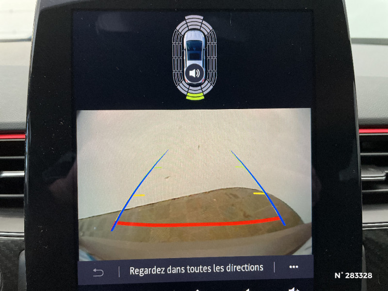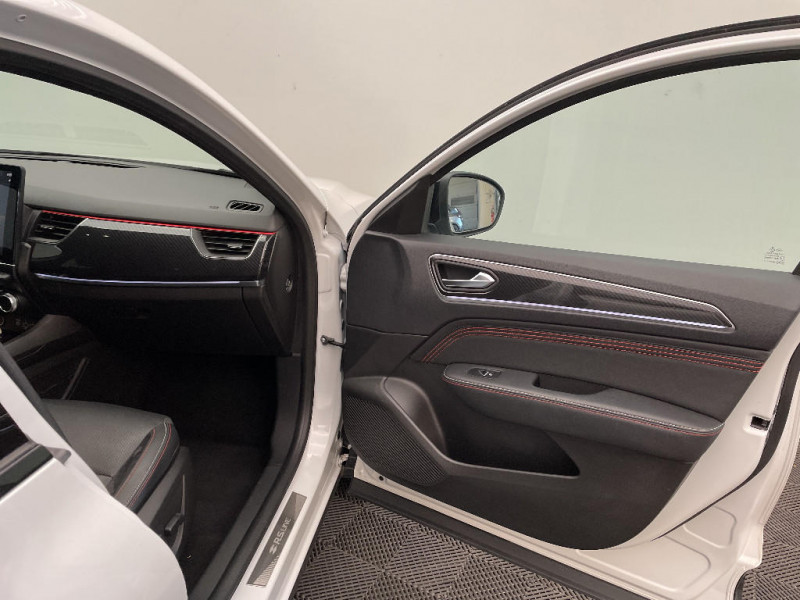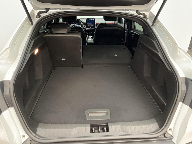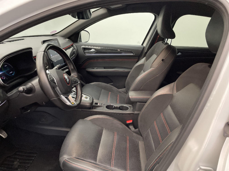 Jantes alliage 18" Silverstone diamantées exclusives R.S. Line avec insert Rouge / Version Fast Track / Tableau de bord avec écran numérique et personnalisable 10" / Easy link avec écran tactile 9.3", navigation, réplication smartphone, Bluetooth / Réhomologation E-Tech / Système ISOFIX (i-Size) aux places AR (latérales) / Alerte de survitesse combinéà la vitesse limite de la navigation / Frein de parking électrique avec fonction Auto-Hold / Coques de rétroviseurs extérieures noires (avec Toit Noir) / Freinage actif d'urgence avec détection piétons et cyclistes / Bouton d'appel d'urgence R-Call / Sellerie mixte cuir-suédine surpiqués rouge / Signature R.S. Line / Volant cuir pleine fleur / Boitier connect AIVC / Design intérieur RS-Line / Carte Renault avec accès et démarrage mains libres avec fermeture à l'éloignement / Renault Multi-sense / Allumage automatique des phares et des essuis-glace avec capteur de pluie et de luminosité / Avertisseur de sortie de stationnement / Boite de vitesse E shifter / Détection d'obstacle latérale / Feux de jour à LED avec signature lumineuse C-Shape / Programme eco mode / Rétroviseur intérieur électrochrome sans contour / Aérateurs aux places AR / Lève-vitres AR électriques avec fonction anti-pincement / Purificateur d'air / Commutation automatique des feux de route/croisement / Harmonie foncé / Design exterieur RS-Line / Easy Park Assist / Indicateur de changement de vitesse / Eclairage d'ambiance / Alerte Distance Sécurité / Alerte d'oubli de ceinture de sécurité / Volant chauffant / Banquette AR avec accoudoir central / Compartimentage de coffre / Projecteurs AV full LED Pure Vision
