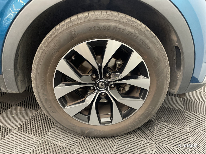 Coques de rétroviseurs ton caisse / Indicateur de changement de vitesse / Alerte Distance Sécurité / Alerte d'oubli de ceinture de sécurité / Compartimentage de coffre / Projecteurs AV full LED Pure Vision / Commutation automatique des feux de route/croisement / Kit de gonflage et de réparation des pneumatiques / Harmonie foncé / Carte Renault avec accès et démarrage mains libres avec fermeture à l'éloignement / Allumage automatique des phares et des essuis-glace avec capteur de pluie et de luminosité / Volant gainé en similicuir Soft Touch / Boitier connect AIVC / Navigation embarquée avec cartographie Europe / Tableau de bord avec écran couleur 4,2'' et compteurs analogiques / Système ISOFIX (i-Size) aux places AR (latérales) / Alerte de survitesse combinéà la vitesse limite de la navigation / Compatibilité Apple CarPlay Wifi / Jantes alliage 17" Bahamas diamantées noires / Feux de jour à LED avec signature lumineuse C-Shape / Programme eco mode / Aérateurs aux places AR / Lève-vitres AR électriques avec fonction anti-pincement / Purificateur d'air / Freinage actif d'urgence avec détection piétons et cyclistes / Bouton d'appel d'urgence R-Call / Sellerie tissu Noir Titane