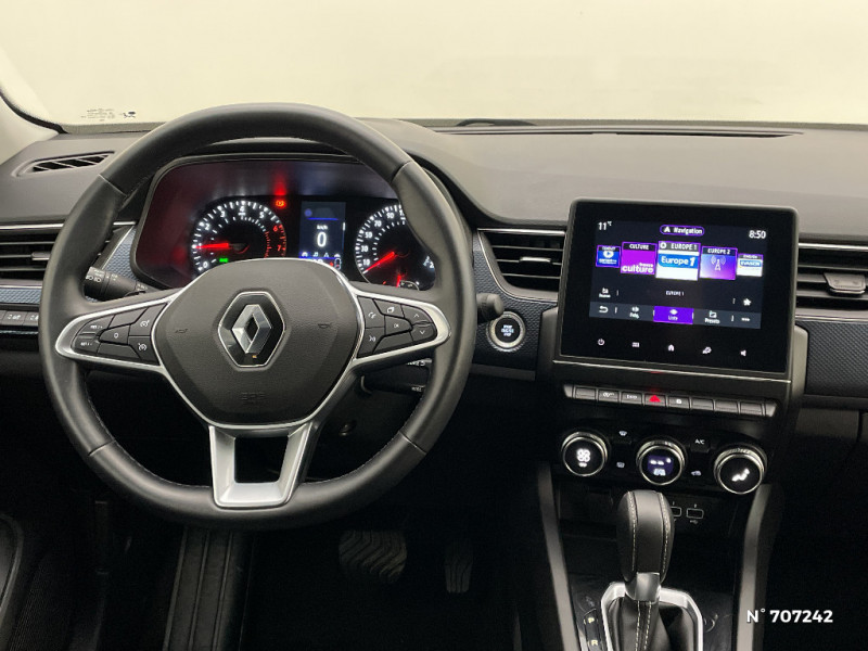 Projecteurs AV full LED Pure Vision / Commutation automatique des feux de route/croisement / Kit de gonflage et de réparation des pneumatiques / Harmonie foncé / Carte Renault avec accès et démarrage mains libres avec fermeture à l'éloignement / Allumage automatique des phares et des essuis-glace avec capteur de pluie et de luminosité / Feux de jour à LED avec signature lumineuse C-Shape / Programme eco mode / Aérateurs aux places AR / Lève-vitres AR électriques avec fonction anti-pincement / Purificateur d'air / Freinage actif d'urgence avec détection piétons et cyclistes / Bouton d'appel d'urgence R-Call / Sellerie tissu Noir Titane / Volant gainé en similicuir Soft Touch / Boitier connect AIVC / Navigation embarquée avec cartographie Europe / Tableau de bord avec écran couleur 4,2'' et compteurs analogiques / Système ISOFIX (i-Size) aux places AR (latérales) / Alerte de survitesse combinéà la vitesse limite de la navigation / Compatibilité Apple CarPlay Wifi / Jantes alliage 17" Bahamas diamantées noires / Coques de rétroviseurs ton caisse / Indicateur de changement de vitesse / Alerte Distance Sécurité / Alerte d'oubli de ceinture de sécurité / Compartimentage de coffre