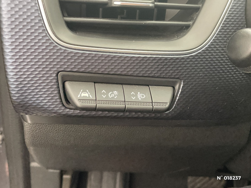 Projecteurs AV full LED Pure Vision / Commutation automatique des feux de route/croisement / Tableau de bord avec écran numérique 4,2'' et compteurs analogiques / Sellerie tissu Noir Titane / Volant gainé en similicuir Soft Touch / Boitier connect AIVC / Système Multimédia EASY LINK avec écran 7" avec replication smartphone + WIFI - 6 haut-parleurs / Navigation embarquée avec cartographie Europe / Tableau de bord avec écran couleur 4,2'' et compteurs analogiques / Système ISOFIX (i-Size) aux places AR (latérales) / Aérateurs aux places AR / Lève-vitres AR électriques avec fonction anti-pincement / Purificateur d'air / Jantes alliage 17" Bahamas diamantées noires / Freinage actif d'urgence avec détection piétons et cyclistes / Bouton d'appel d'urgence R-Call / Kit de gonflage et de réparation des pneumatiques / Harmonie foncé / Système ISOFIX (i-Size) aux places latérales AR et passager AV / Carte Renault avec accès et démarrage mains libres avec fermeture à l'éloignement / Alerte de survitesse combinéà la vitesse limite de la navigation / Allumage automatique des phares et des essuis-glace avec capteur de pluie et de luminosité / Feux de jour à LED avec signature lumineuse C-Shape / Programme eco mode / Coques de rétroviseurs ton caisse / Indicateur de changement de vitesse / Alerte Distance Sécurité / Alerte d'oubli de ceinture de sécurité / Compartimentage de coffre